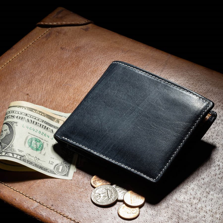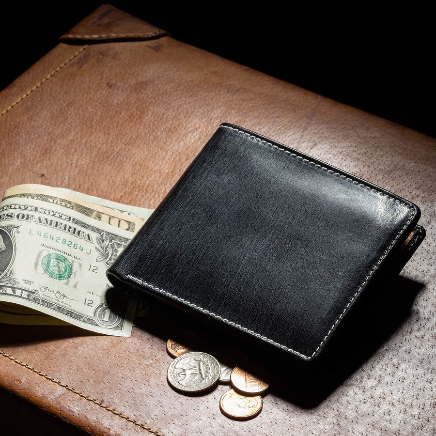 シンプルなデザインで機能性抜群の二つ折り財布。