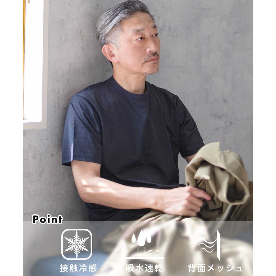 | 素材 | 弱光沢&杢調の素材が上品で、接触冷感、吸水速乾の嬉しい機能付きの春夏におすすめのジャケットTシャツ |