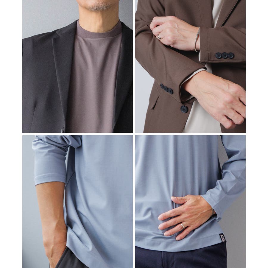 | 素材 | 弱光沢&杢調の素材が上品で、肌触りが良く、吸水速乾の嬉しい機能付き。おすすめのジャケットTシャツ |