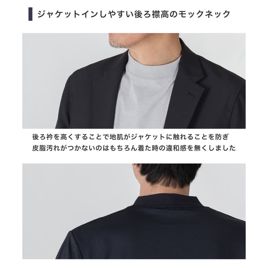 ジャケットインしやすい後ろ衿高のモックネック