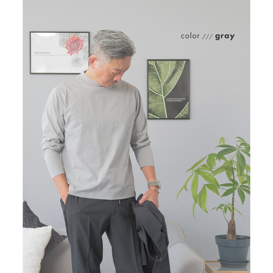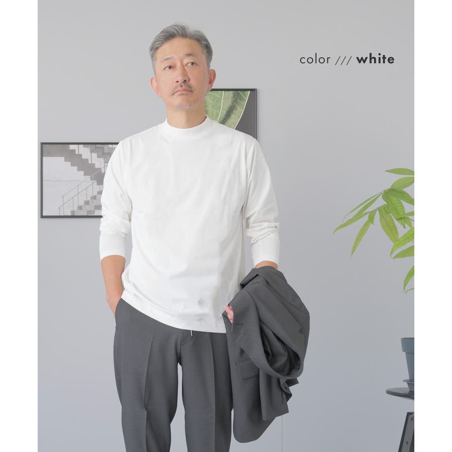 | 素材 | 弱光沢&杢調の素材が上品で、ジャケット襟が素肌に付かないよう後ろ衿高デザイン。おすすめのジャケット用Tシャツ |