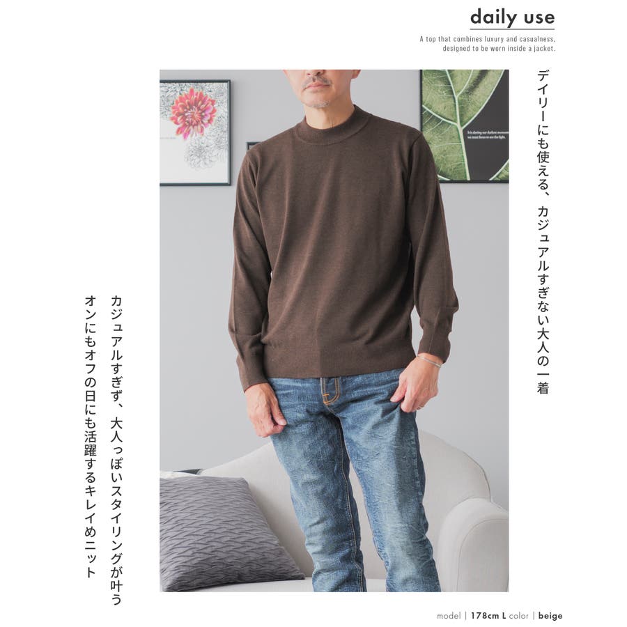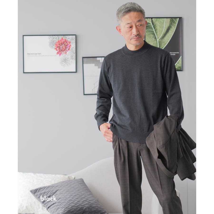 ジャケットインをした時に、襟に美しく収まるモックネック