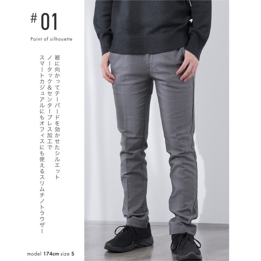 キーワード:ビジネス チノパン スラックス 暖か あたたかい オフィスカジュアル スマートカジュアル チノスラックス 伸びる デイリー グレンチェック 千鳥格子 ボーダー スリム 細身 30代 40代 50代