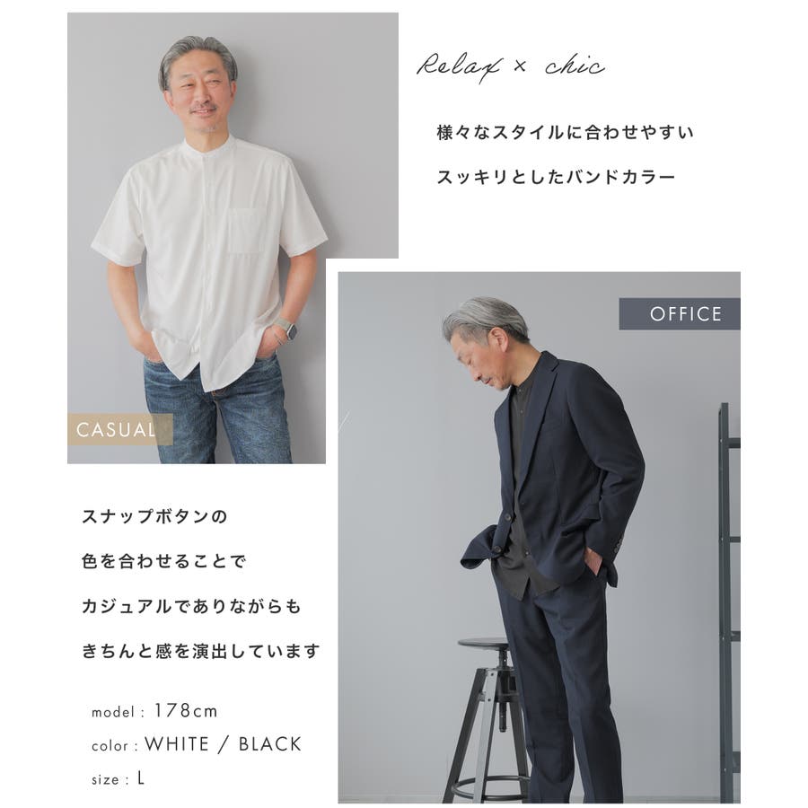 特徴 | snap botton banded coller shirt セットアップコーデに馴染む程よい抜け感が魅力の長袖バンドカラーシャツ きちんとしながらもリラックスした余裕を感じさせるシャツ とろみがありさらっとした着心地の素材感 様々なスタイルに合わせやすいすっきりとしたスタンド襟 スナップボタンの色を生地と合わせることで カジュアルでありながらも、きちんと感を演出しています 柔らかなとろみと程よい光沢 ストレッチ・吸水速乾・接触冷感 デイリーユースに嬉しいさらっとした着心地 第一ボタンまで止めて「こなれ感」 第一ボタンを開けて「リラックス感」 モデル 178cm / サイズ L ※ホワイトは透け感があります。インナーの着用をおすすめします キーワード:シャツ メンズ 長袖 バンドカラー 白 黒 オフィス カジュアル ビジネス スタンド トップス ストレッチ AWC ブランド カジュアルシャツ M L LL 3L ベージュ |