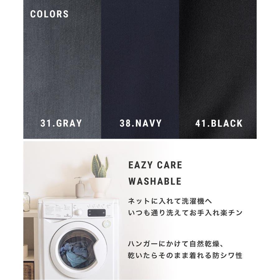 | 素材 | 素材はウールライクギャバジン。しなやかな風合いと柔らかい肌触り。上品な素材感が特徴のギャバジン。ウーリーな見た目はドレスTシャツはもちろんシルクたいでもキマるドレッシーな素材。イージーケア仕様で家庭洗濯機で洗えるからお手入れも楽 |