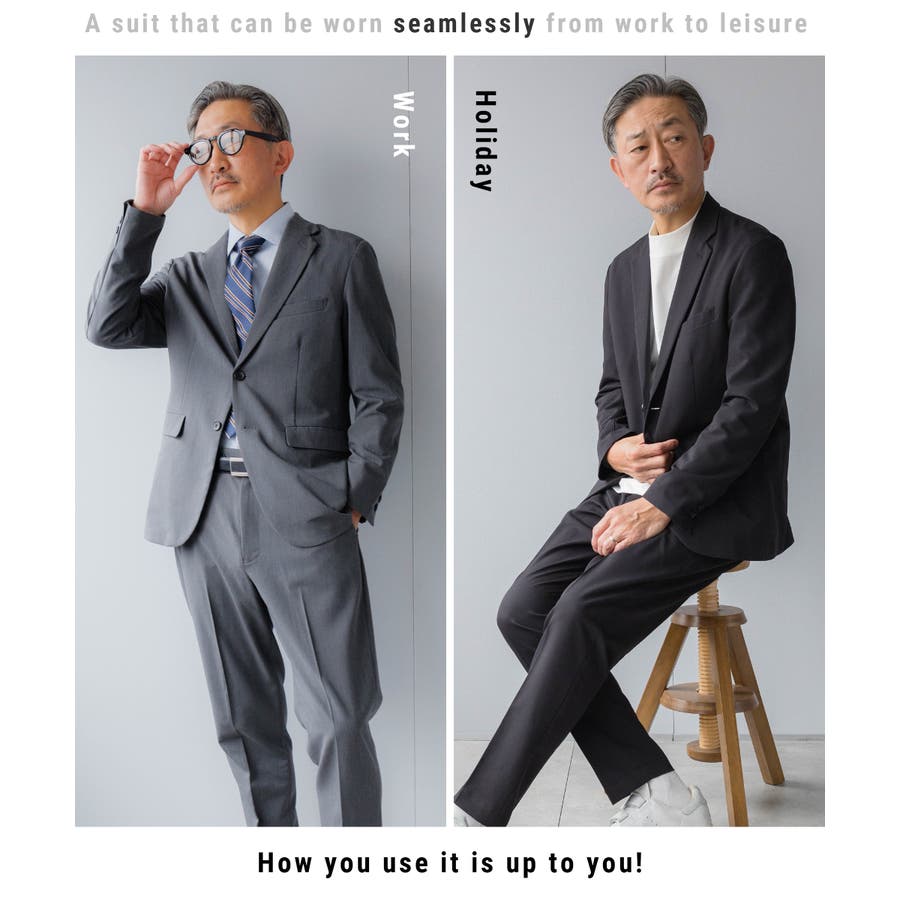 | 特徴 | 楽な着心地×スーツらしいきちんと見せ セットアップで嬉しいストレッチや洗える機能 スーツらしい縫製仕様によるきちんと感 それぞれのメリットを掛け合わせたビジネス特化セットアップ 印象を決めるジャケット クリーンな印象を作るために袖口やジャケット裾に入るステッチ線を無くしスーツと同様の仕上げに。 消えないクリースライン パンツをドレッシーに魅せてくれるセンタープレスライン このラインが消えないようセンターラインの裏側に樹脂をつけるリントラック加工を施しました 着心地を左右するストレッチ しゃがむ、階段を上る、手を伸ばす あらゆる動作に合わせて生地がついてくる心地よさ ラクを叶えるバックゴムシャーリング 体型を選ばず履けるキレイに魅せるテーパードパンツ バックゴム仕様で楽な履き心地も両立 素材はウールライクギャバジン しなやかな風合いと柔らかい肌触り 上品な素材感が特徴のギャバジン ウーリーな見た目はドレスTシャツはもちろんシルクたいでもキマるドレッシーな素材 イージーケア仕様で家庭洗濯機で洗えるからお手入れも楽 キーワード:春 夏 秋 冬 オールシーズン AWC 婚活 30代 40代 50代 グレー ネイビー ブラック 灰 紺 黒 仕事 オフィスカジュアル メンズ カジュアルスーツ ストレッチスーツ ビジネススーツ ビジカジ スマートカジュアル |
