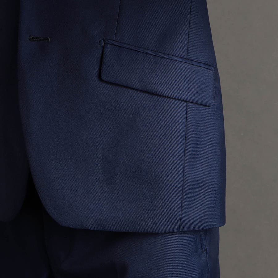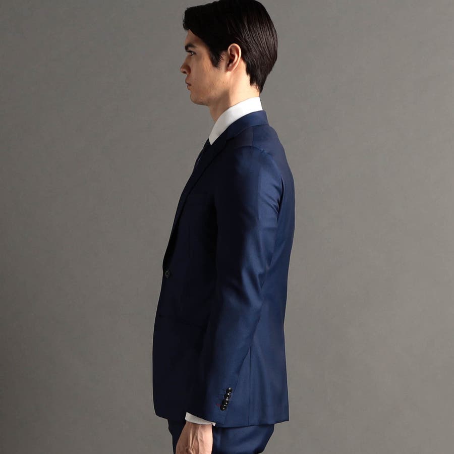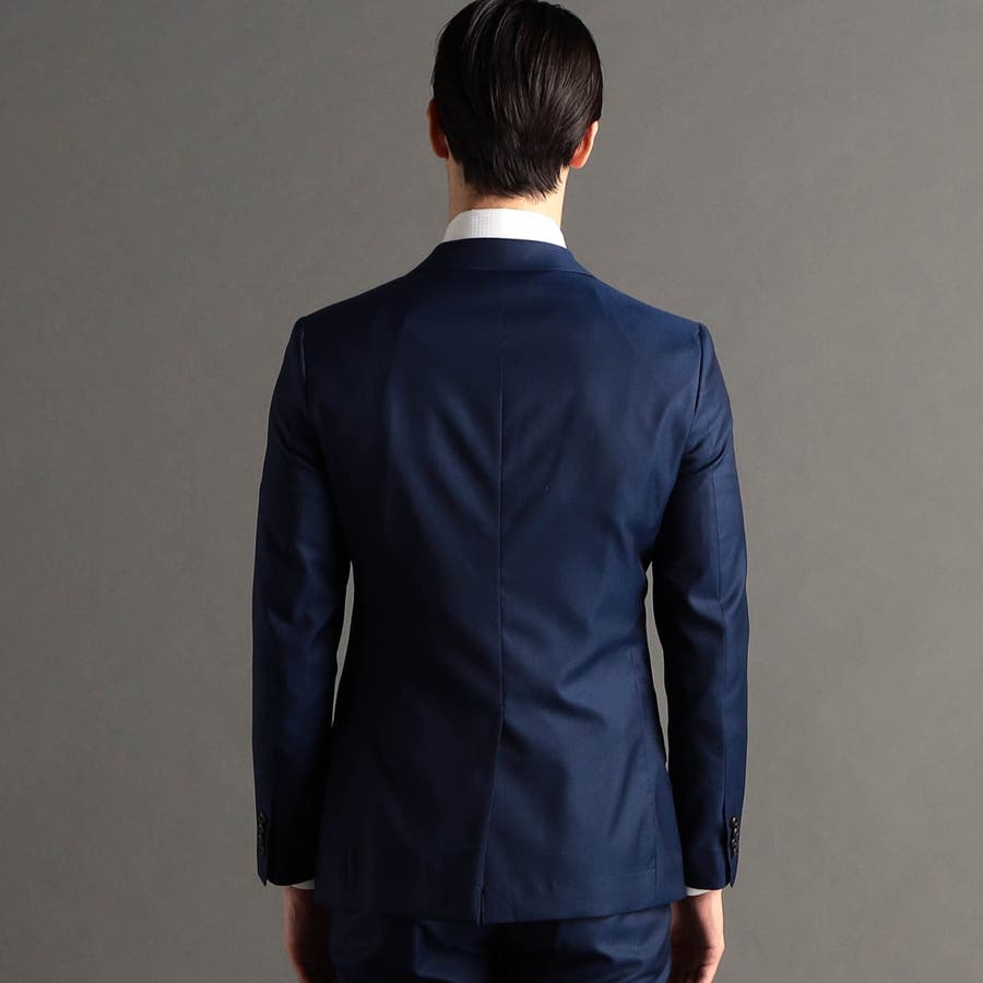 ジャケットはスリムモデルのノッチドラペル2つ釦、背抜き仕様。