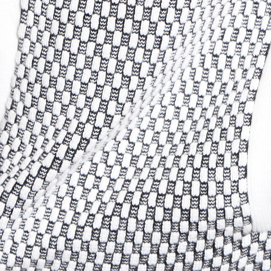 伸縮性の異なる糸を使用することで凹凸感のあるジオメトリック柄を表現しました。