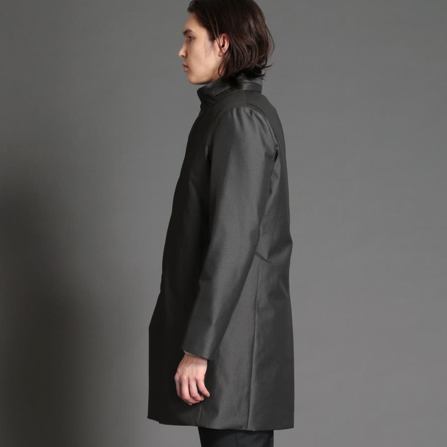 艶感のあるスタンドカラーコートは、ビジネスからカジュアルまで幅広く対応できます。