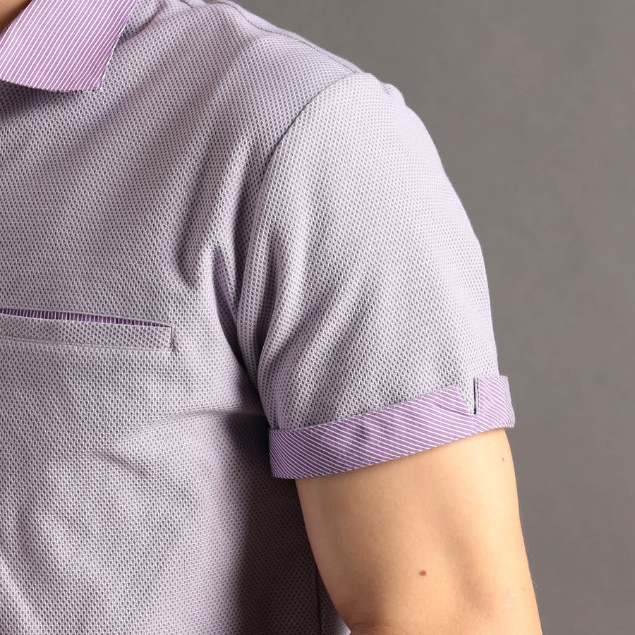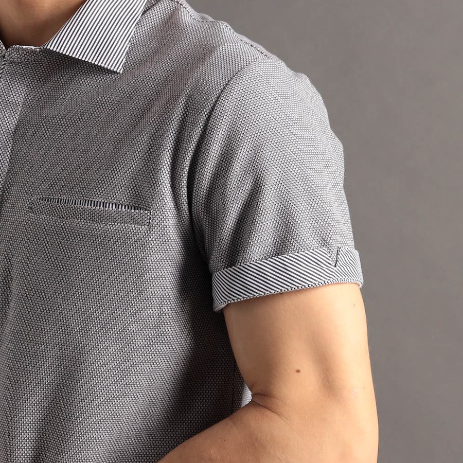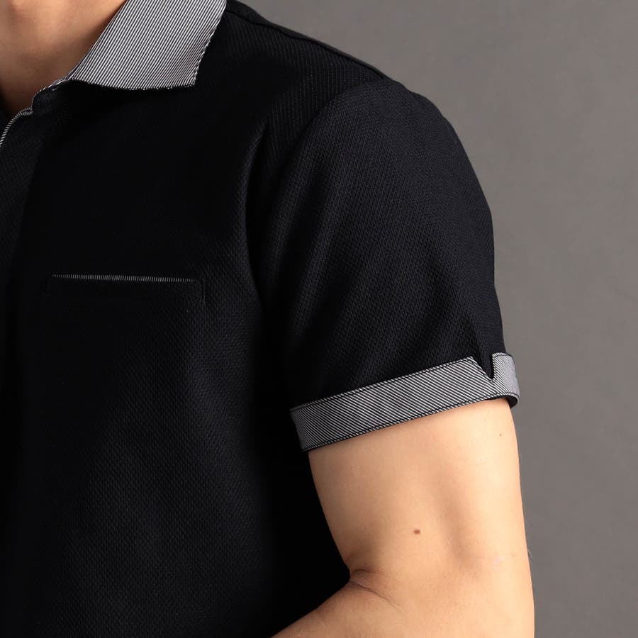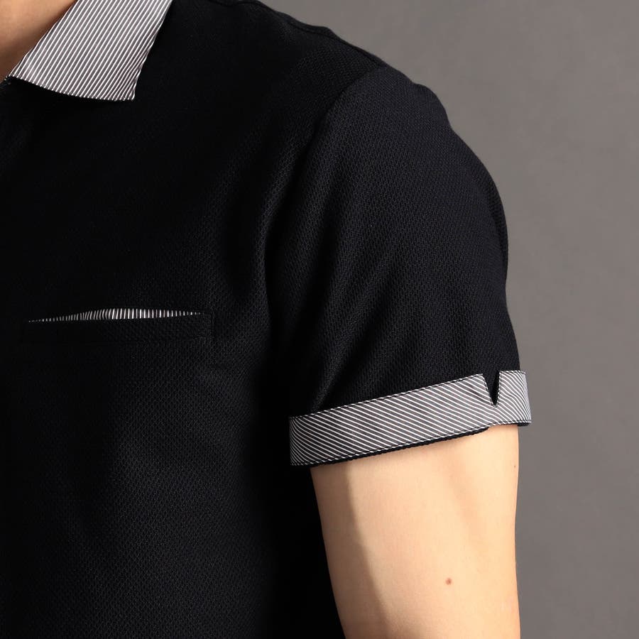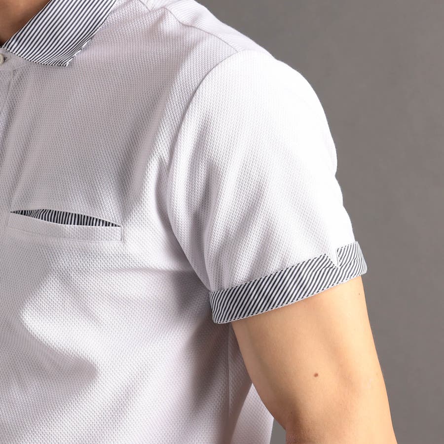 ハニカムジャージー ストライプシャツ襟 ポロシャツ