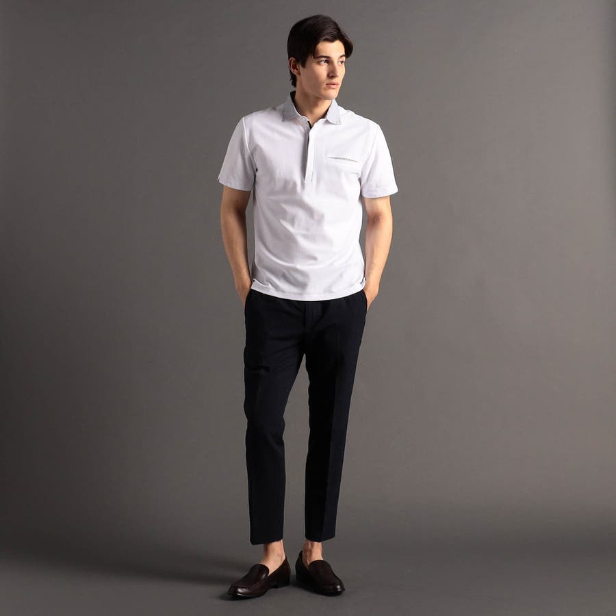 シャツ襟のポロシャツはカジュアルになり過ぎず、一枚でも上品に着こなせます。