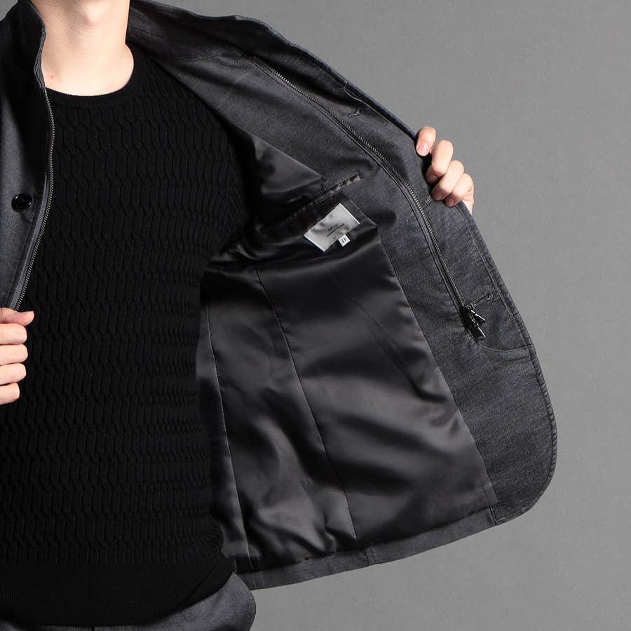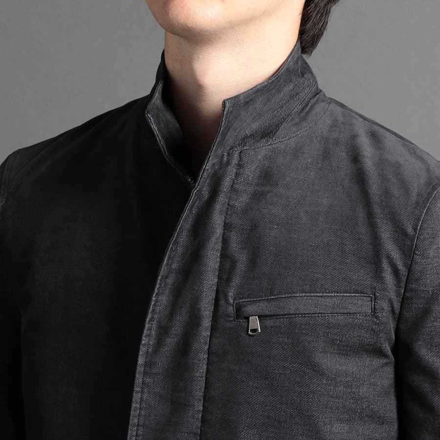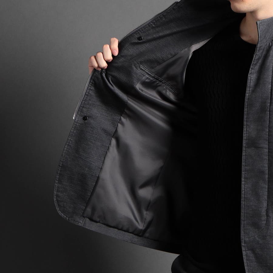 ジップアップデザインでブルゾンライクに仕上げたスタンドカラージャケット。