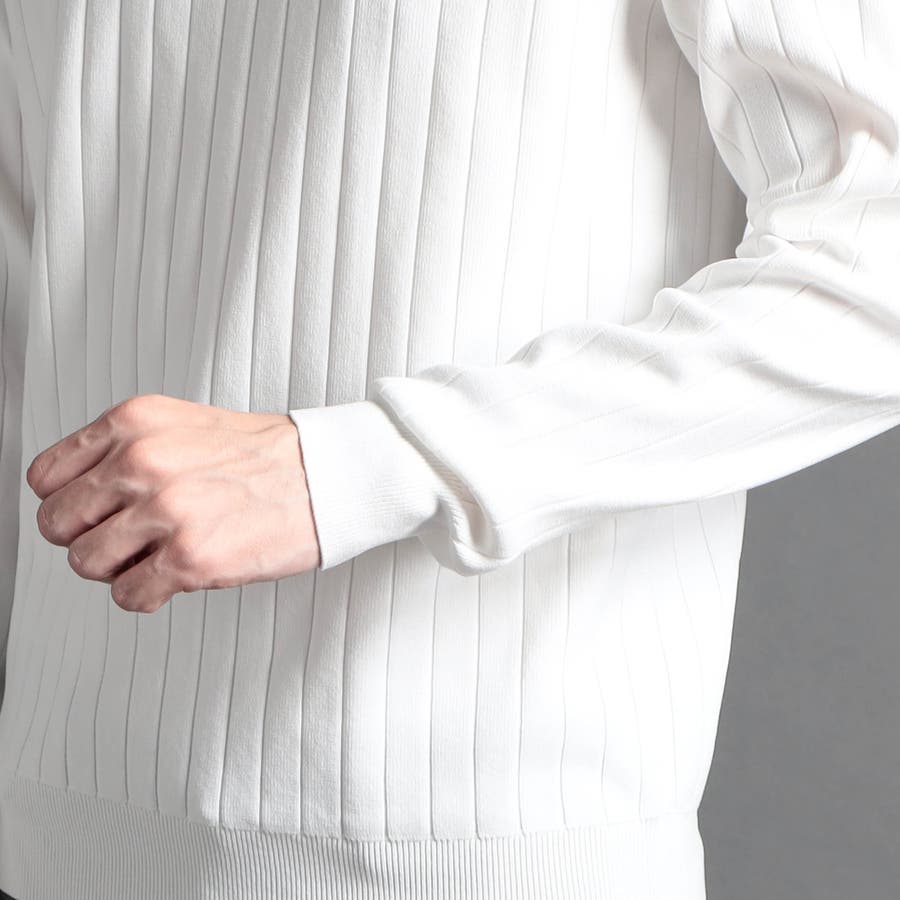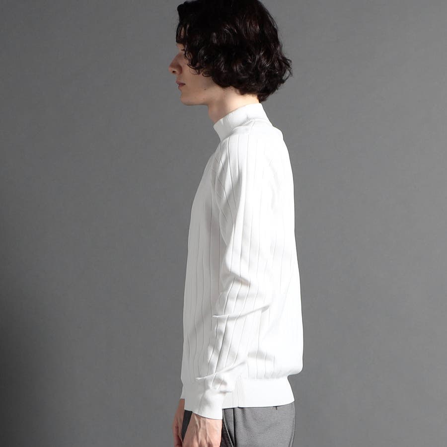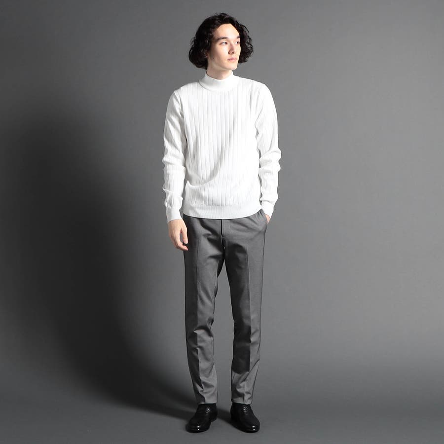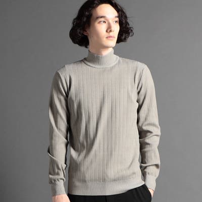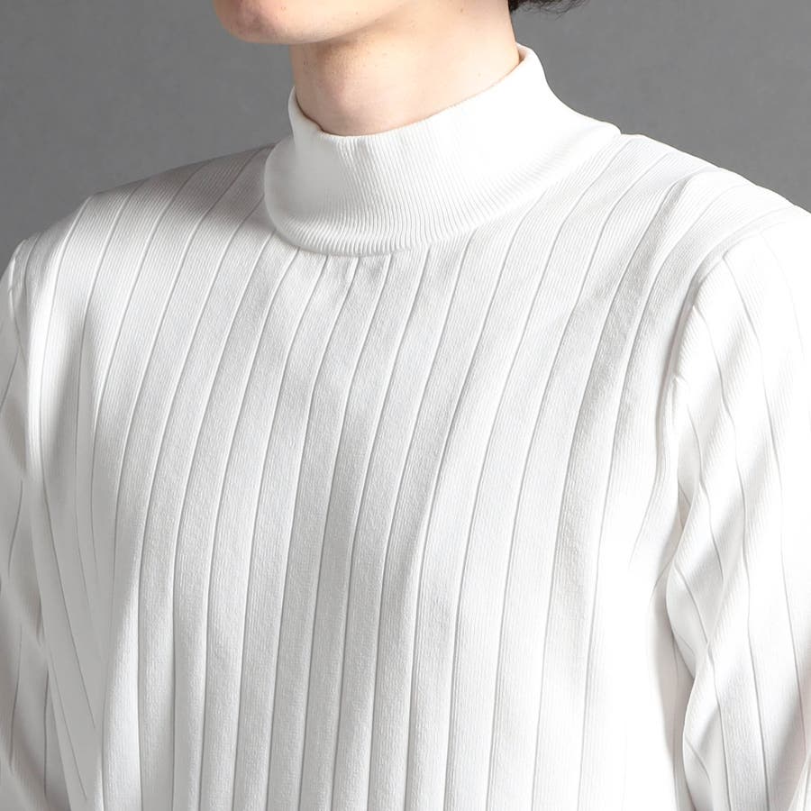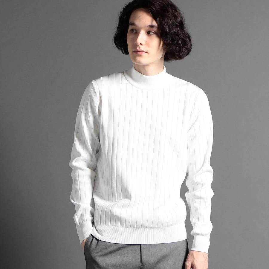 大人な雰囲気漂うワイドリブのモックネックニット。