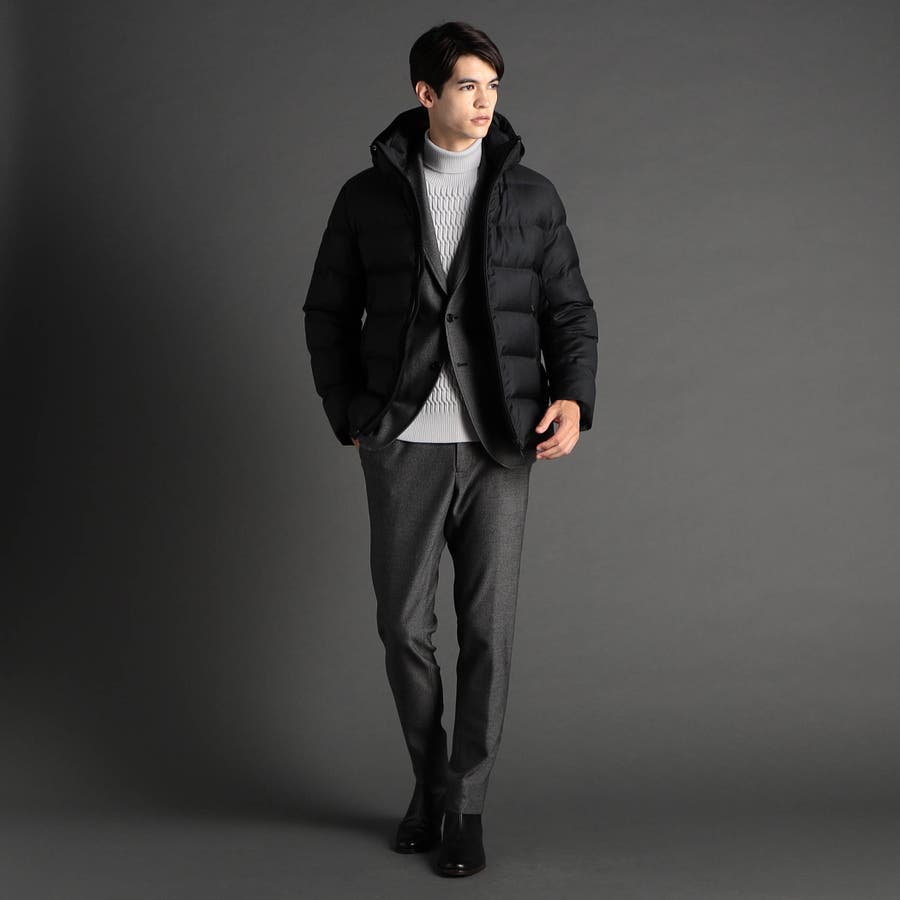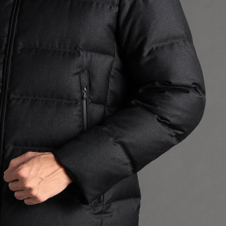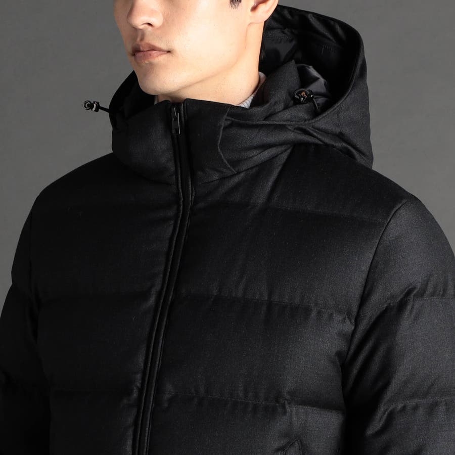 素材 | 本体:毛100%(裏側ポリウレタンフィルム使用) 前身頃裏地:キュプラ100% 袖裏・後身頃裏地・フード裏地:ポリエステル64% 複合繊維(ポリエステル)36% 中わた:ダウン80% フェザー20% |