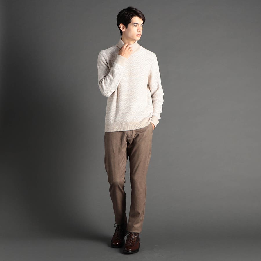 暖かみのある起毛感とメランジ感のアクセントに、クラシックなヘリンボン柄をプラス。