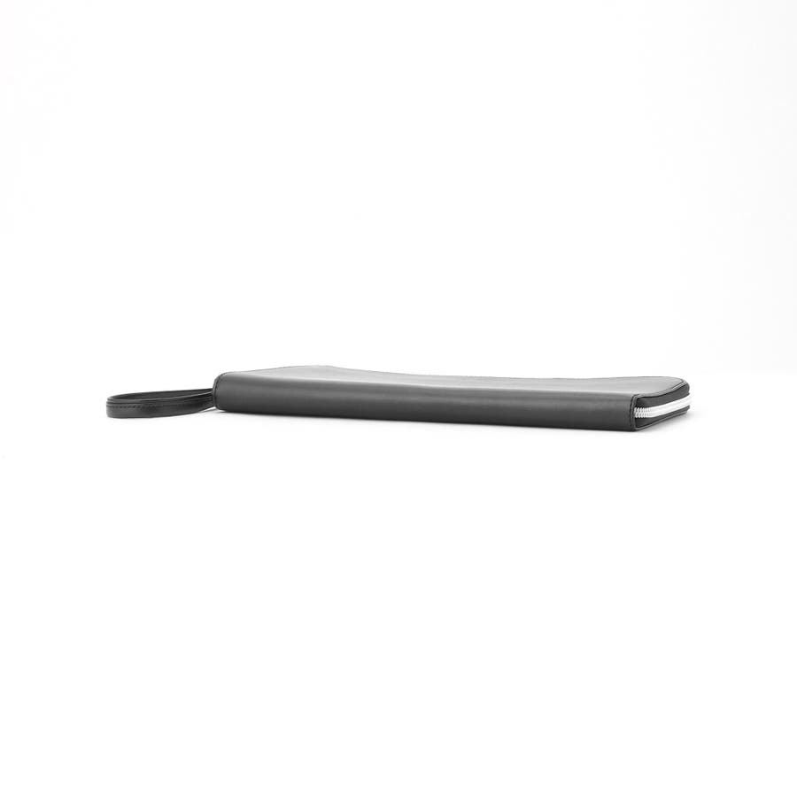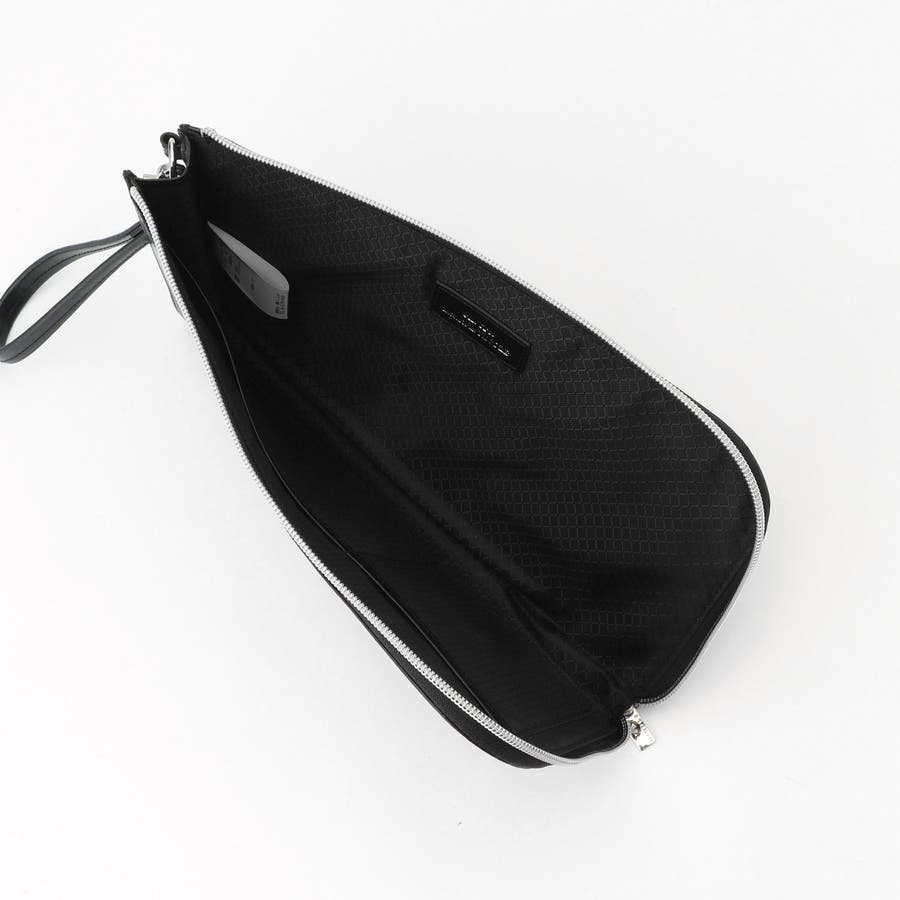 オリジナルファスナースライダー、ストラップ仕様がアクセントのクラッチバッグ。