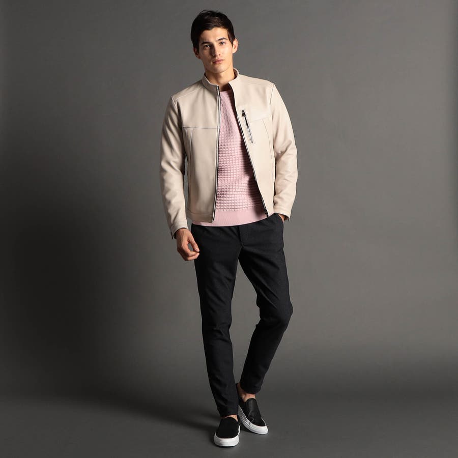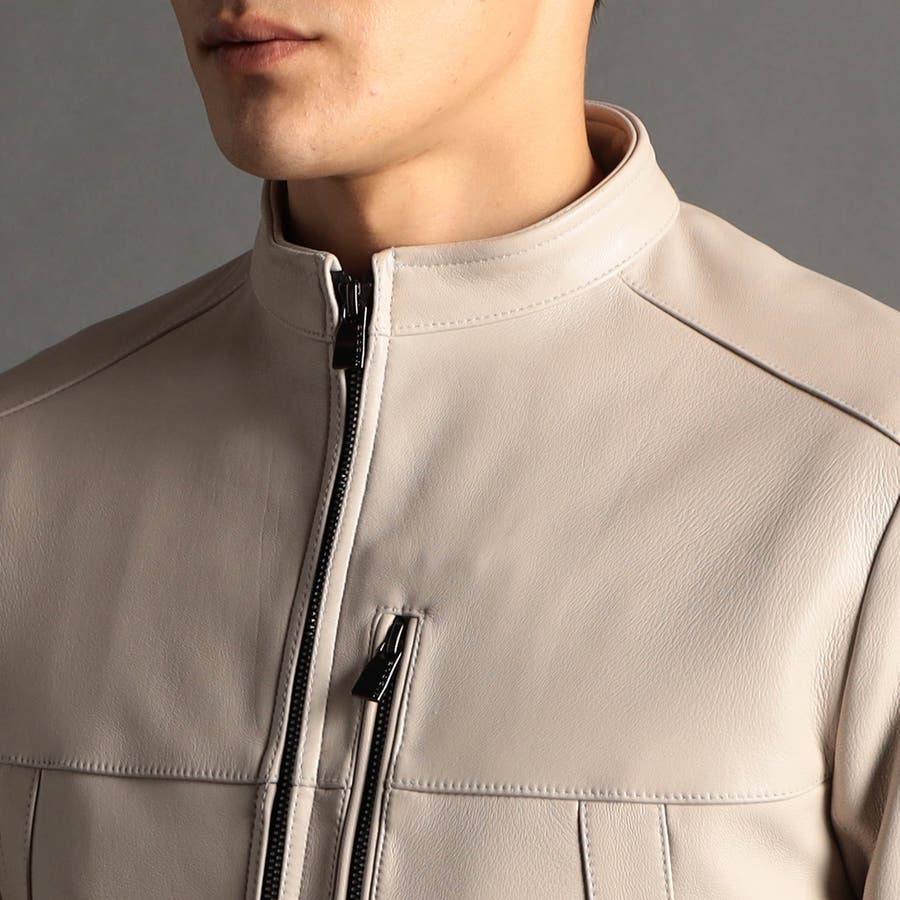 フロント切り替えがアクセントのスポーティなレザーブルゾン。