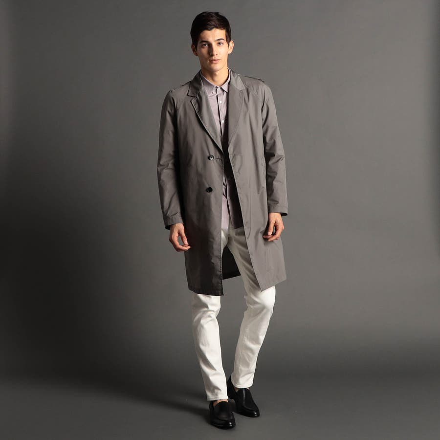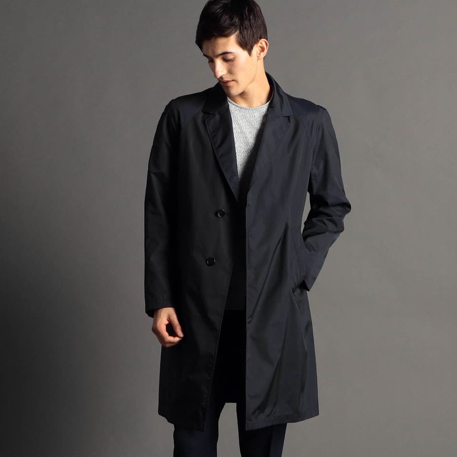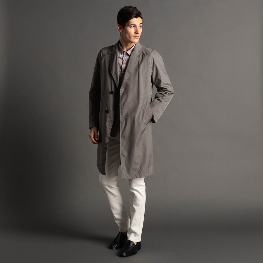 ラグランデザインとフロントダブル仕様で上品な抜け感を演出します。