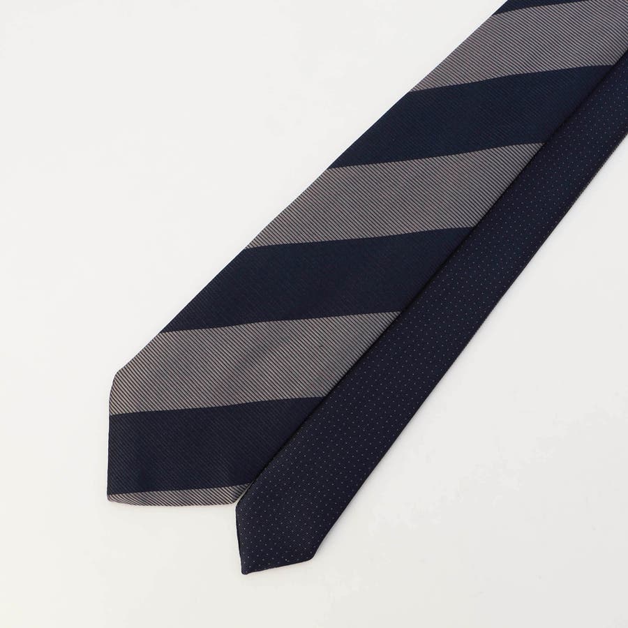 ワイドストライプ/ピンドット リバーシブルネクタイ