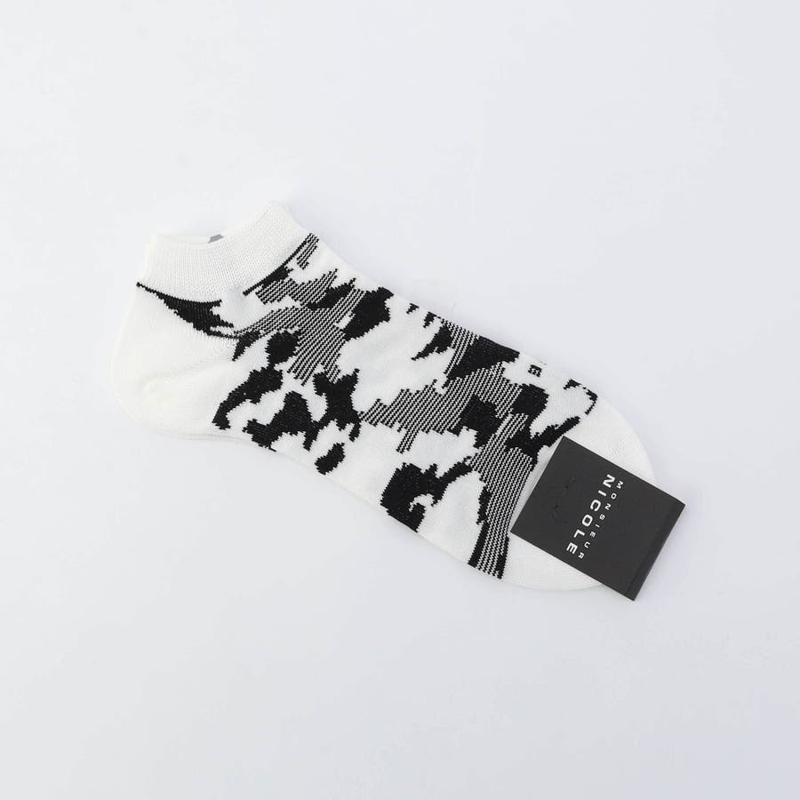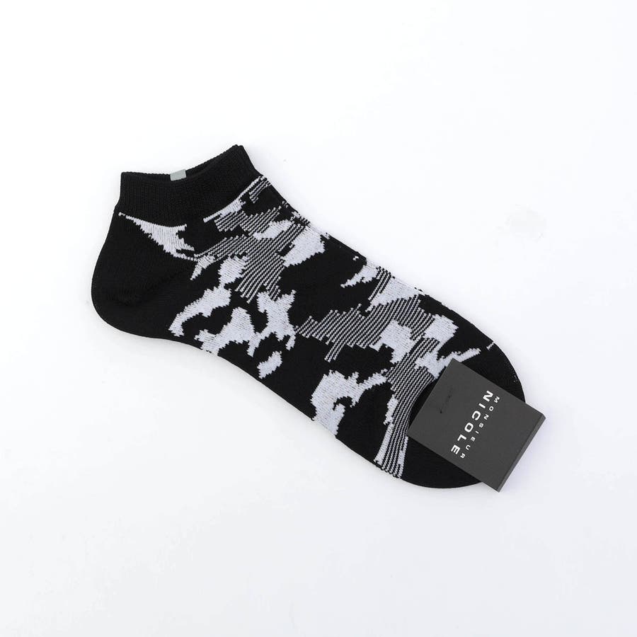 トレンドを意識したカモフラージュ柄に、MONSIEURのロゴを入れた遊び心有るアンクレットソックスです。