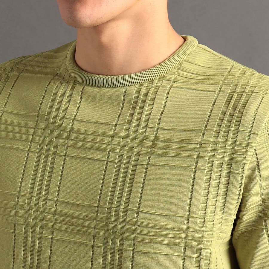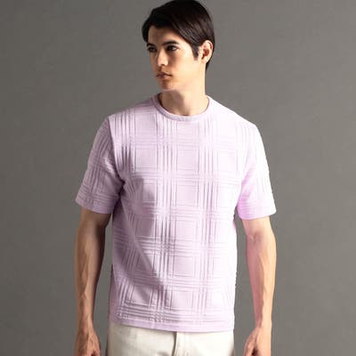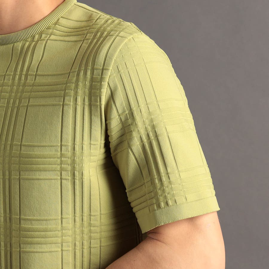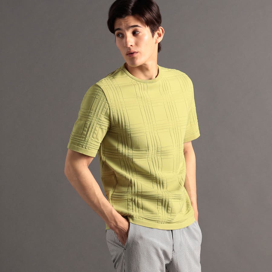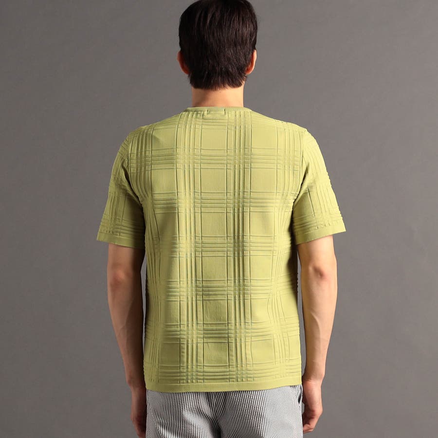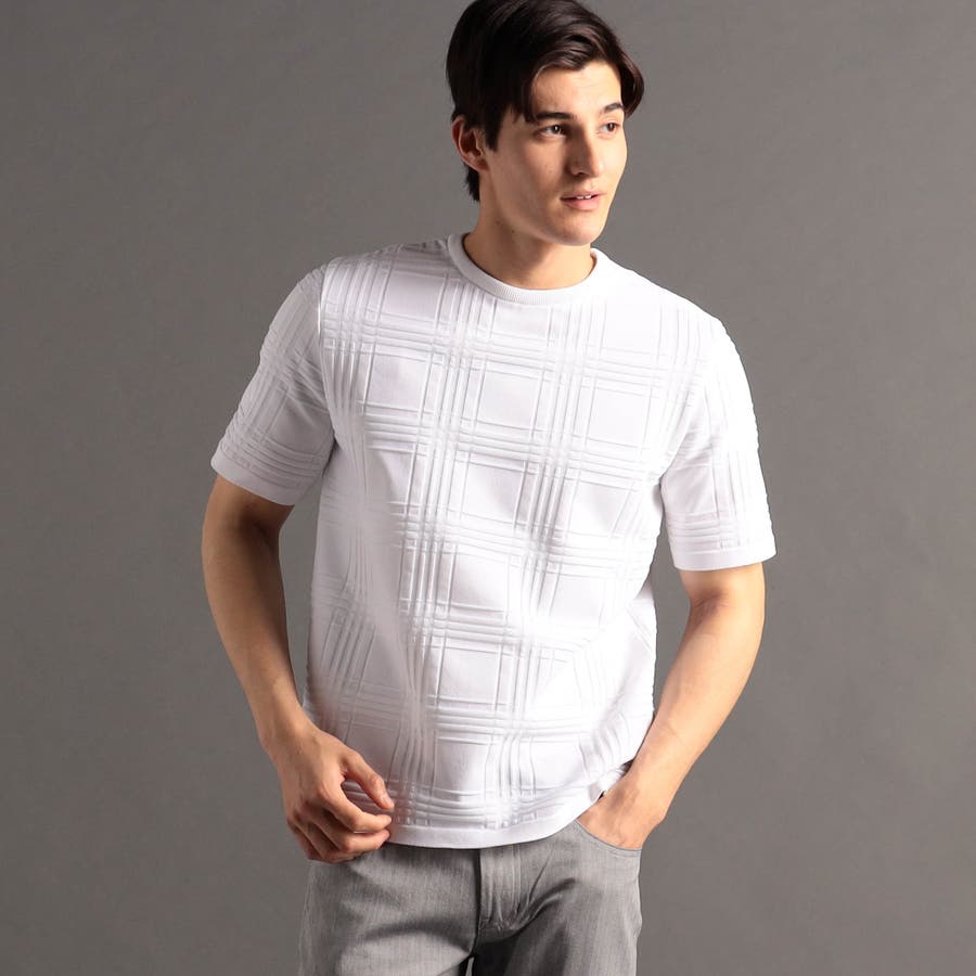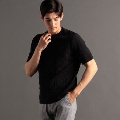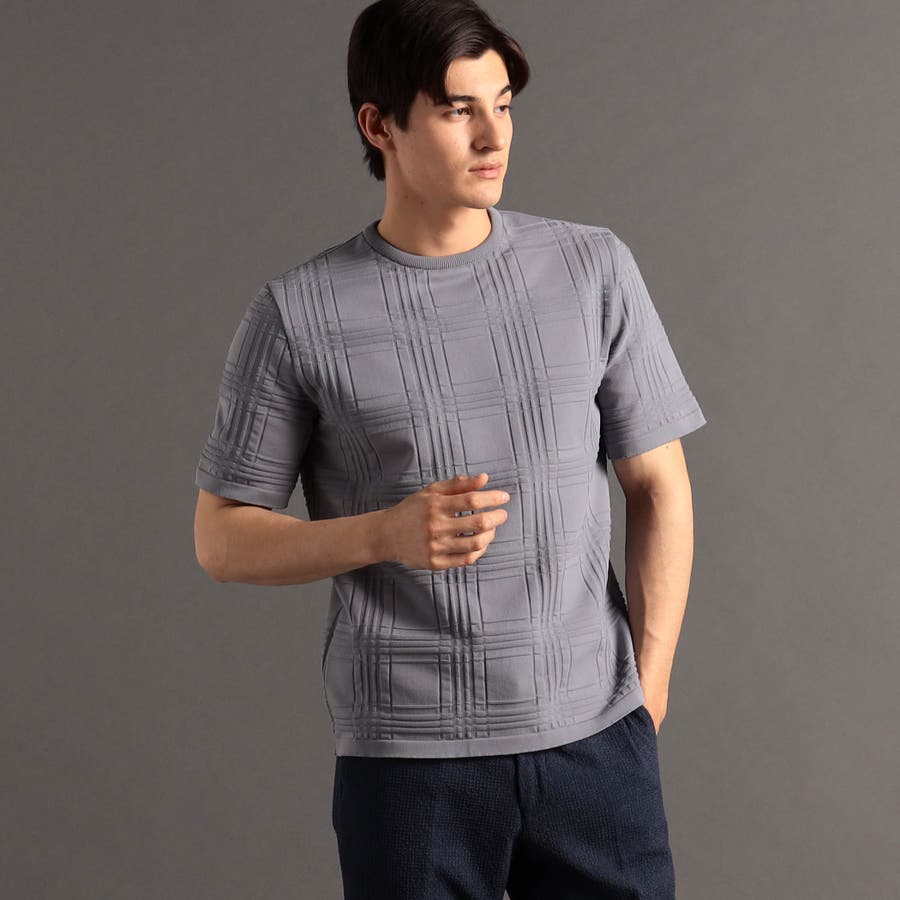 上品な地柄表現のシャドーチェックニットTシャツ。