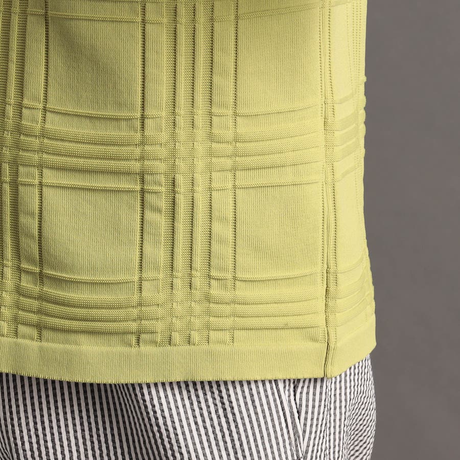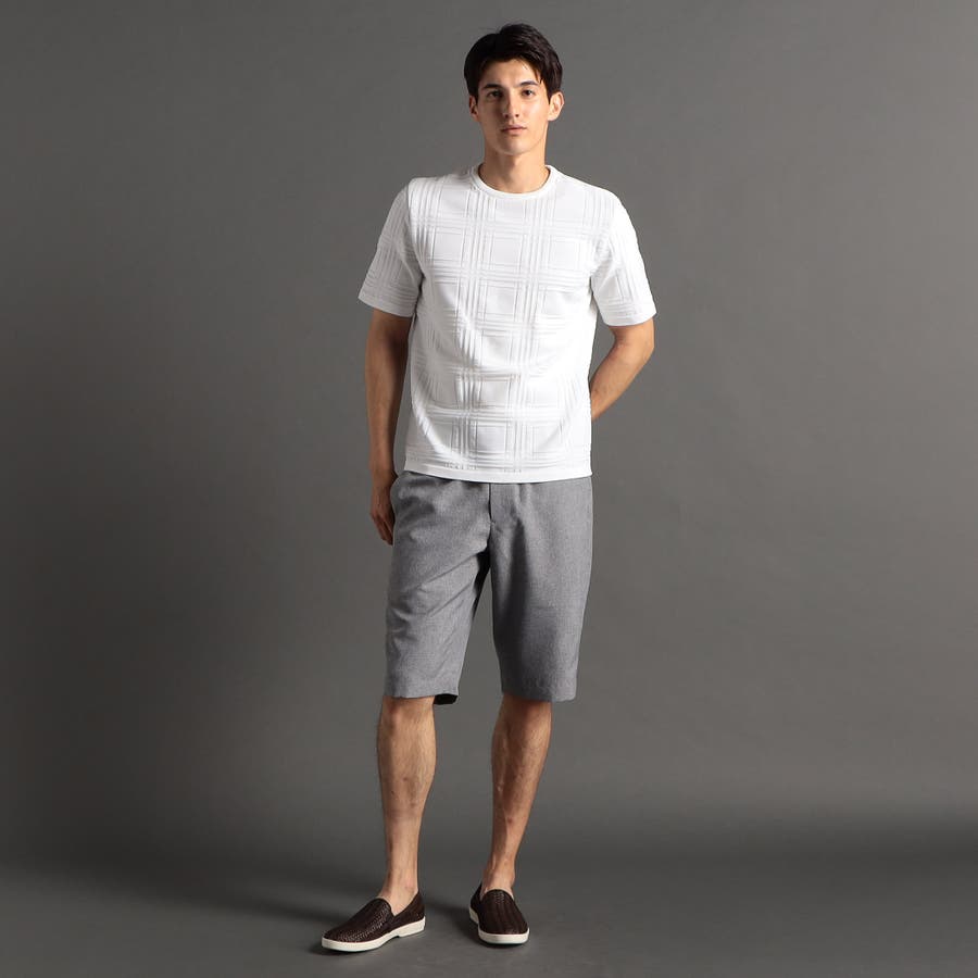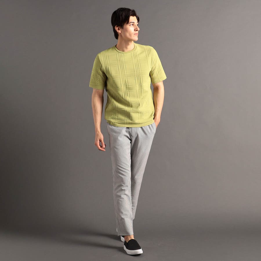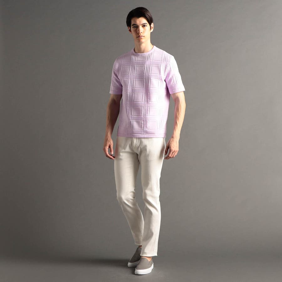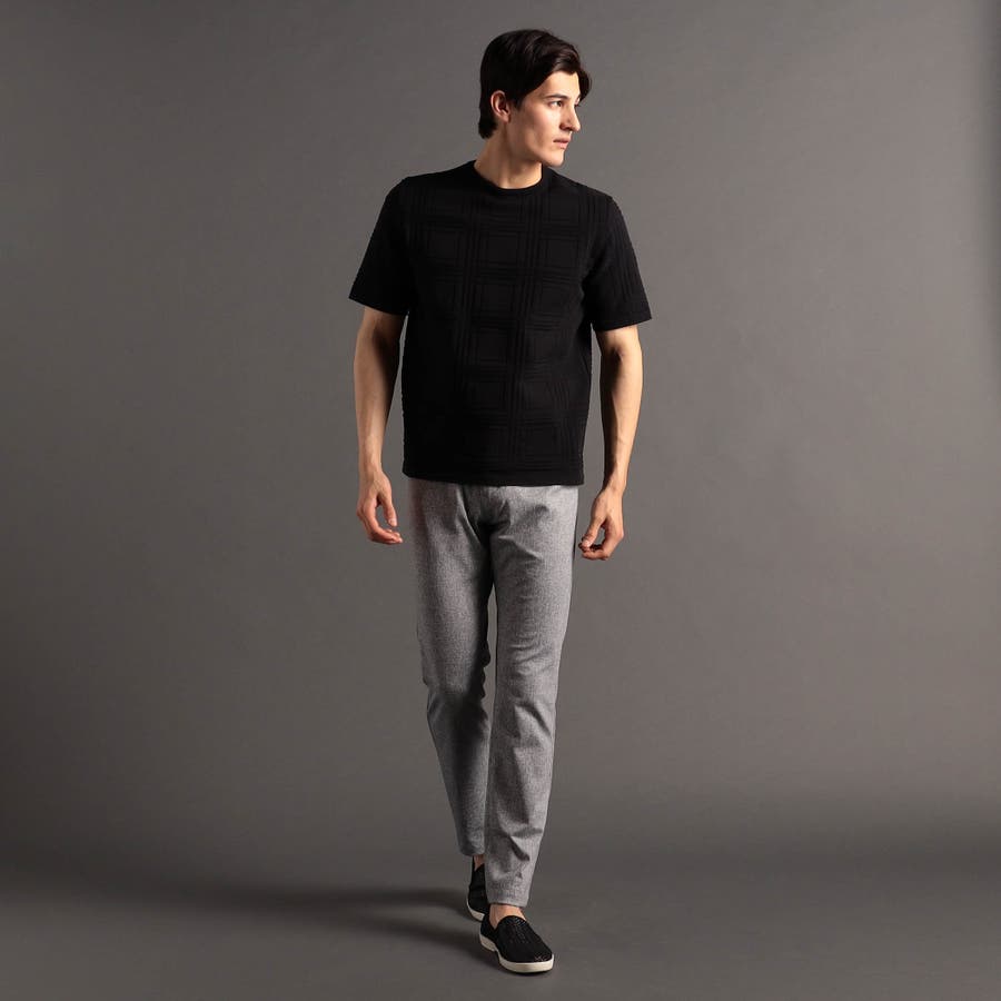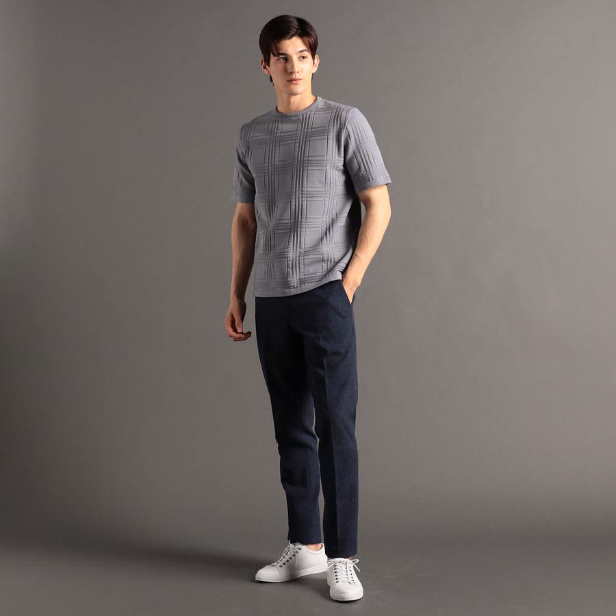 上品な地柄表現のシャドーチェックニットTシャツ。