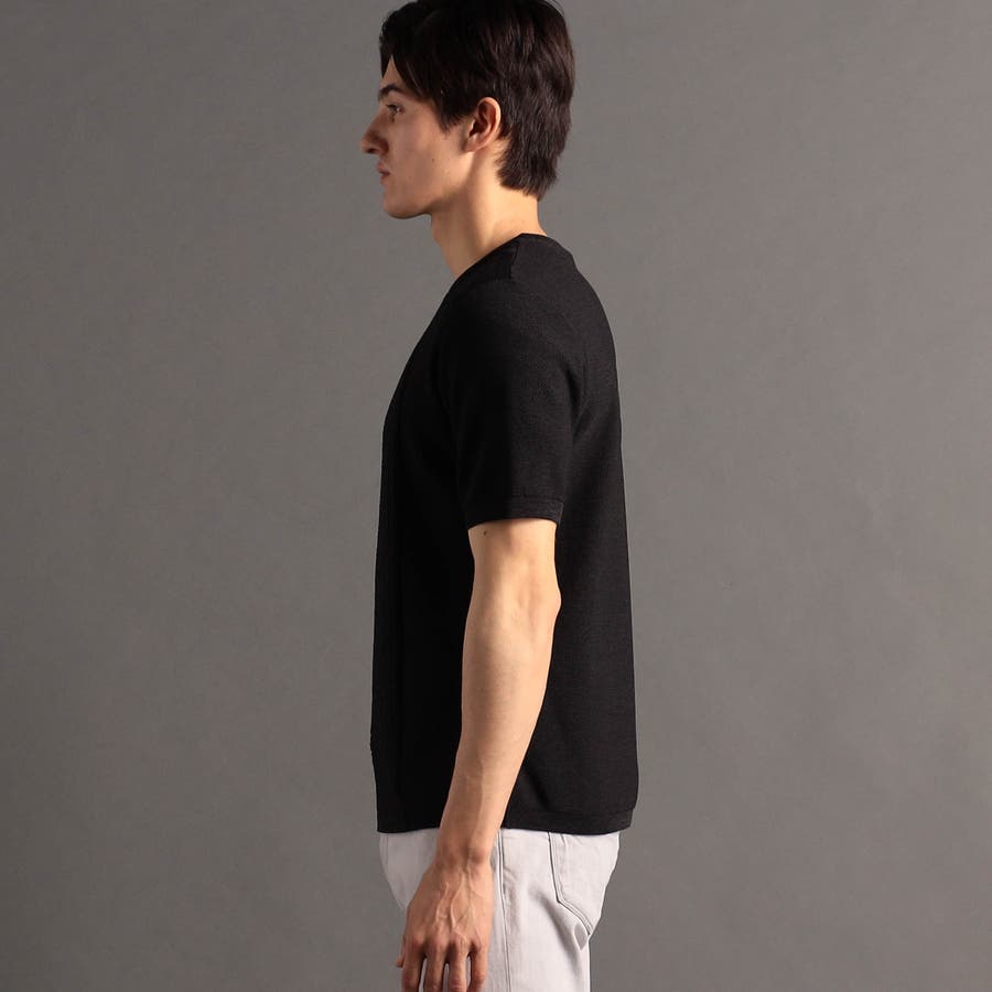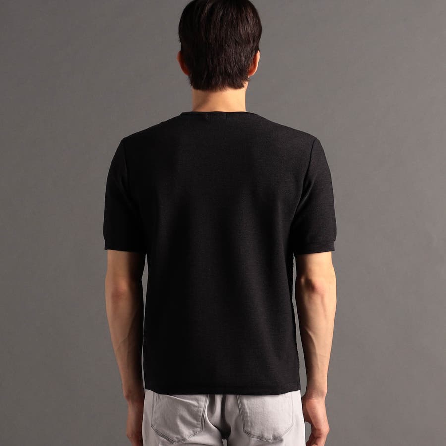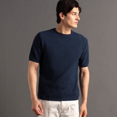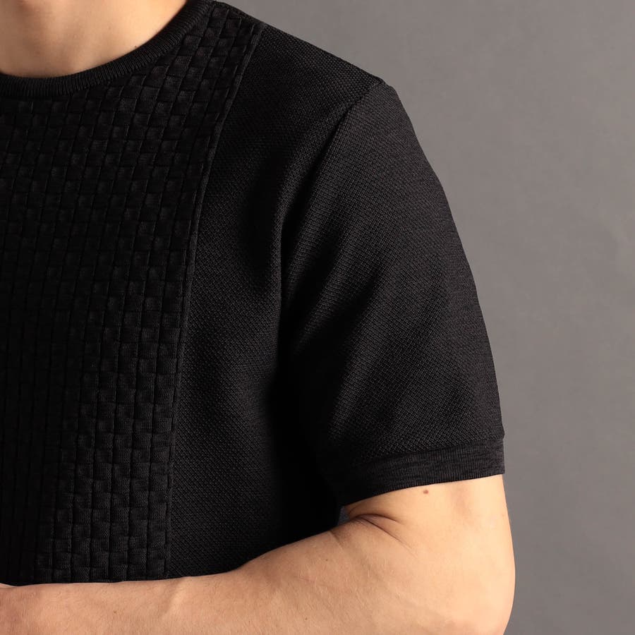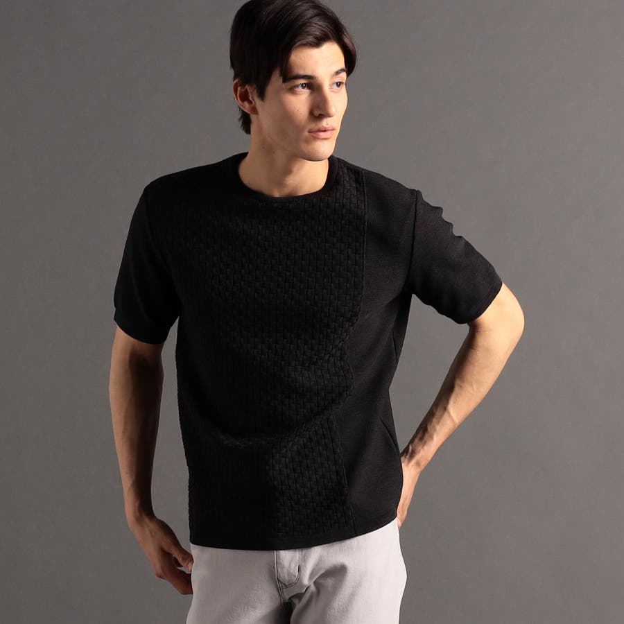 上品な地柄表現のバスケットチェックニットTシャツ。