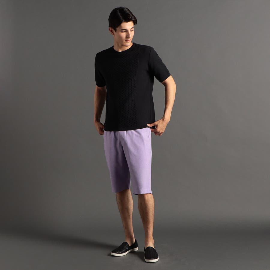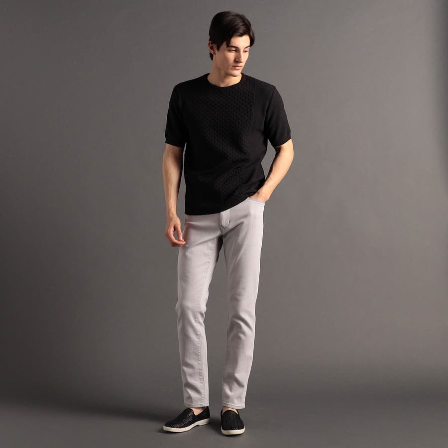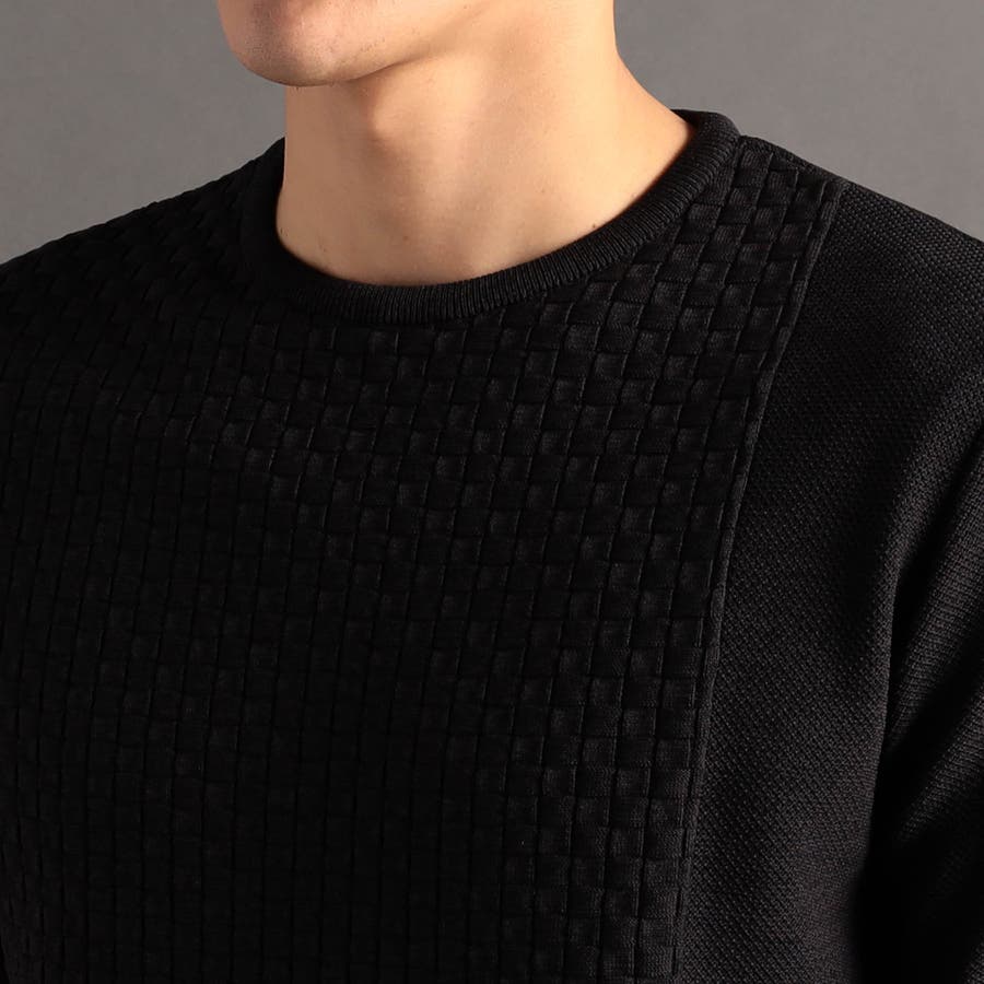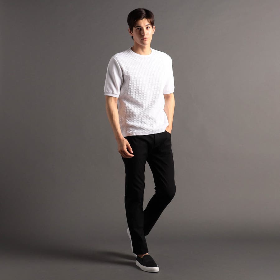 上品な地柄表現のバスケットチェックニットTシャツ。