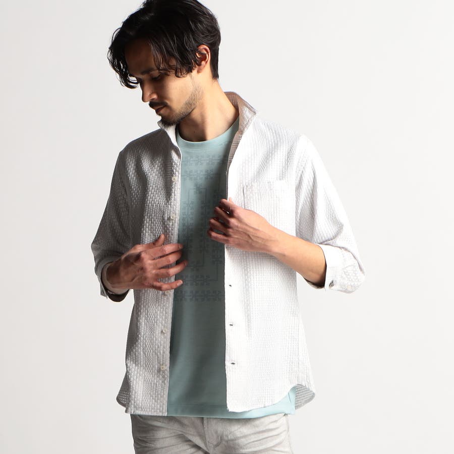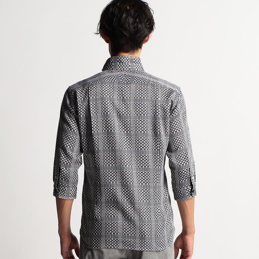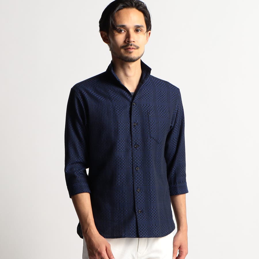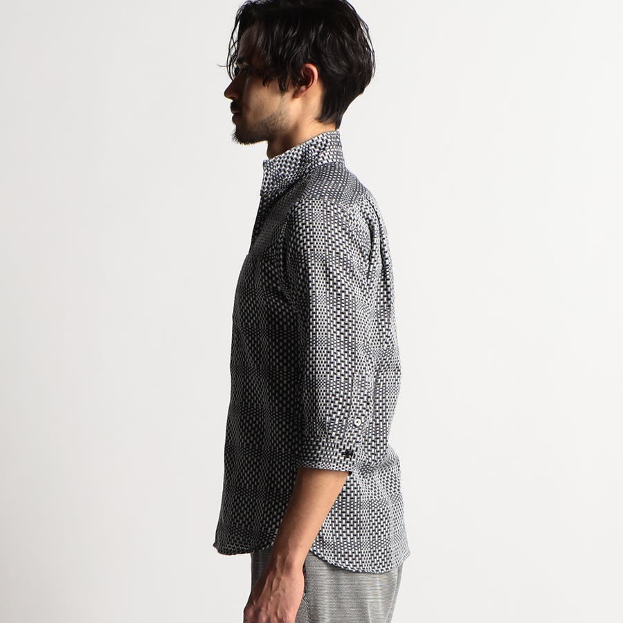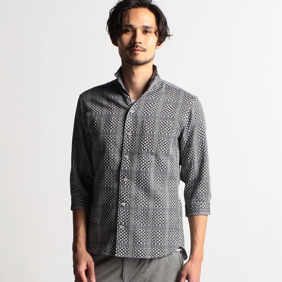 シアードビーチェック7分袖イタリアンカラーシャツ