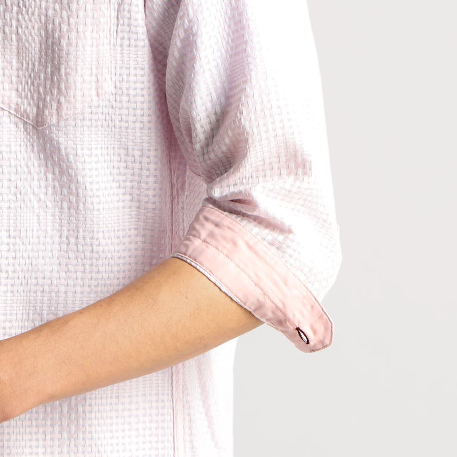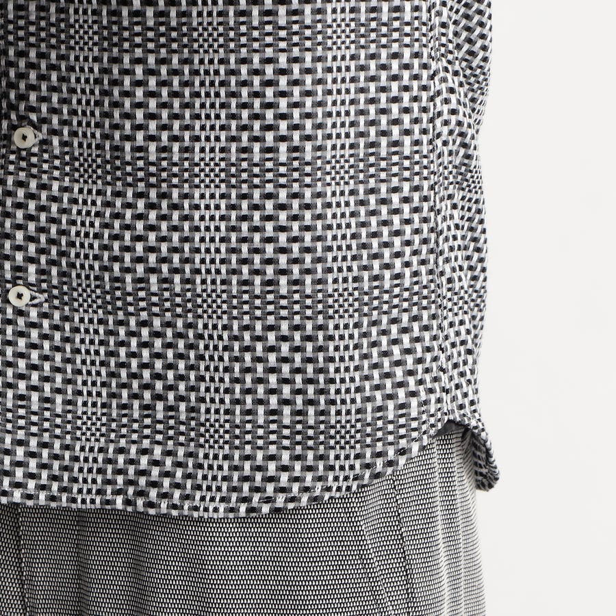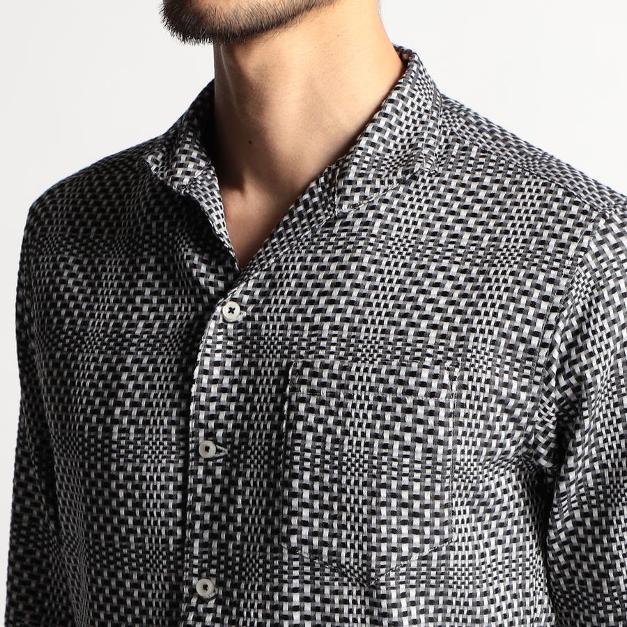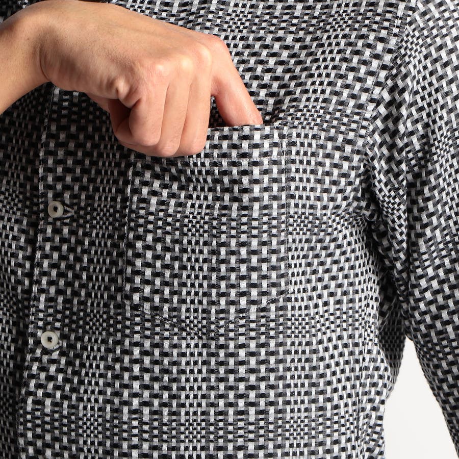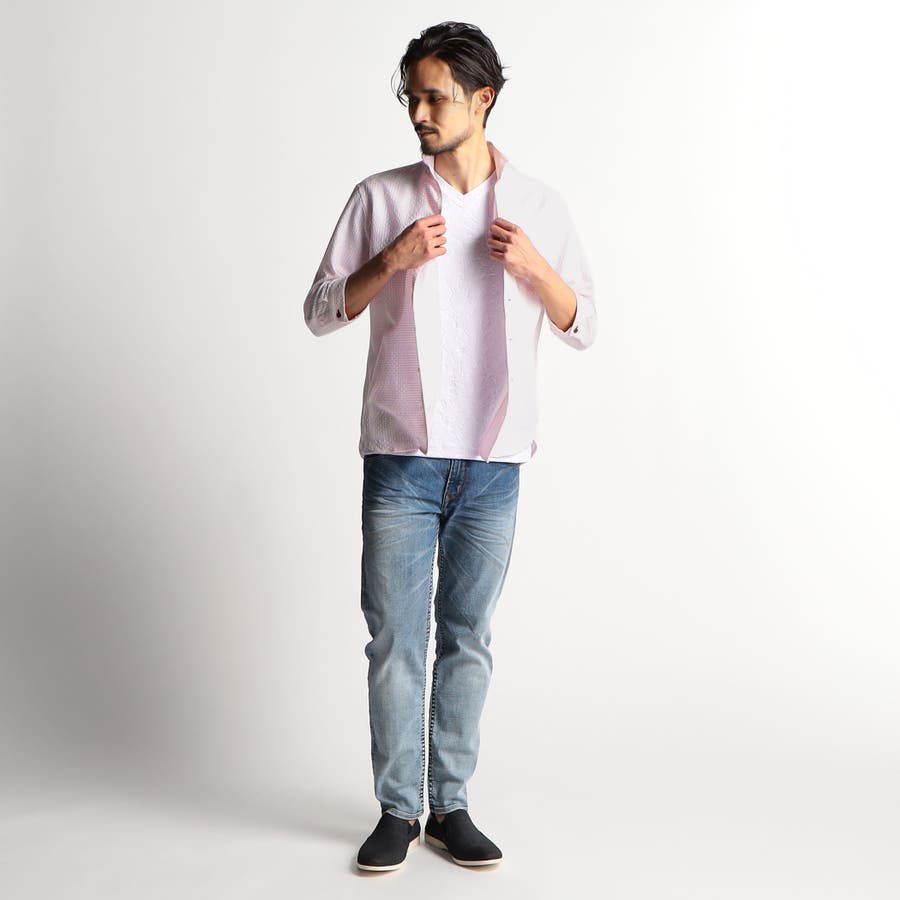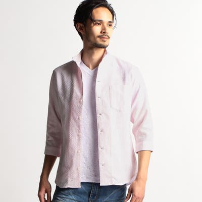 シアードビーチェック7分袖イタリアンカラーシャツ
