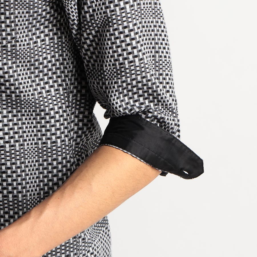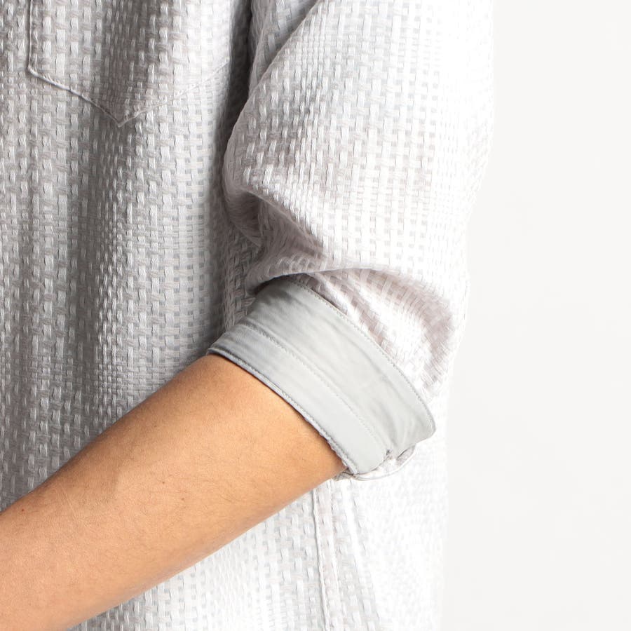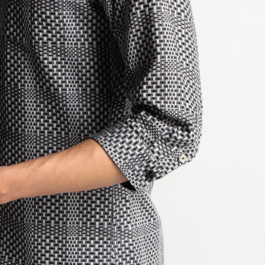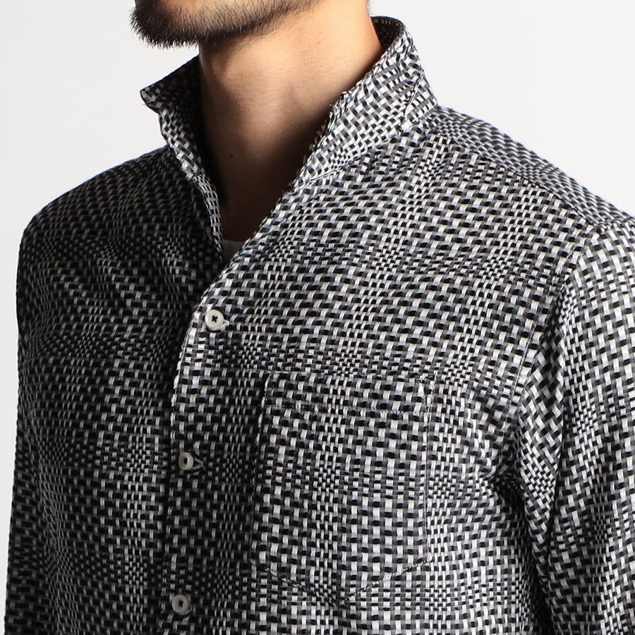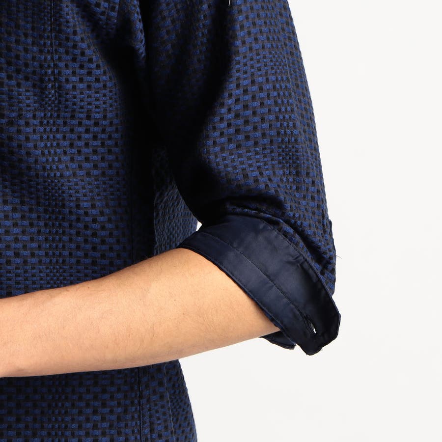 シアードビーチェック7分袖イタリアンカラーシャツ