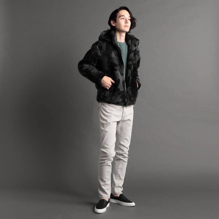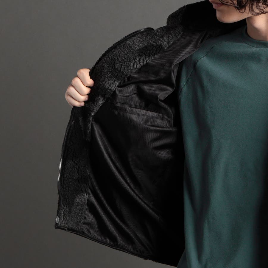 絶妙な傾斜のポケットをアクセントに、取り外し可能としたフーデッドデザインを採用。