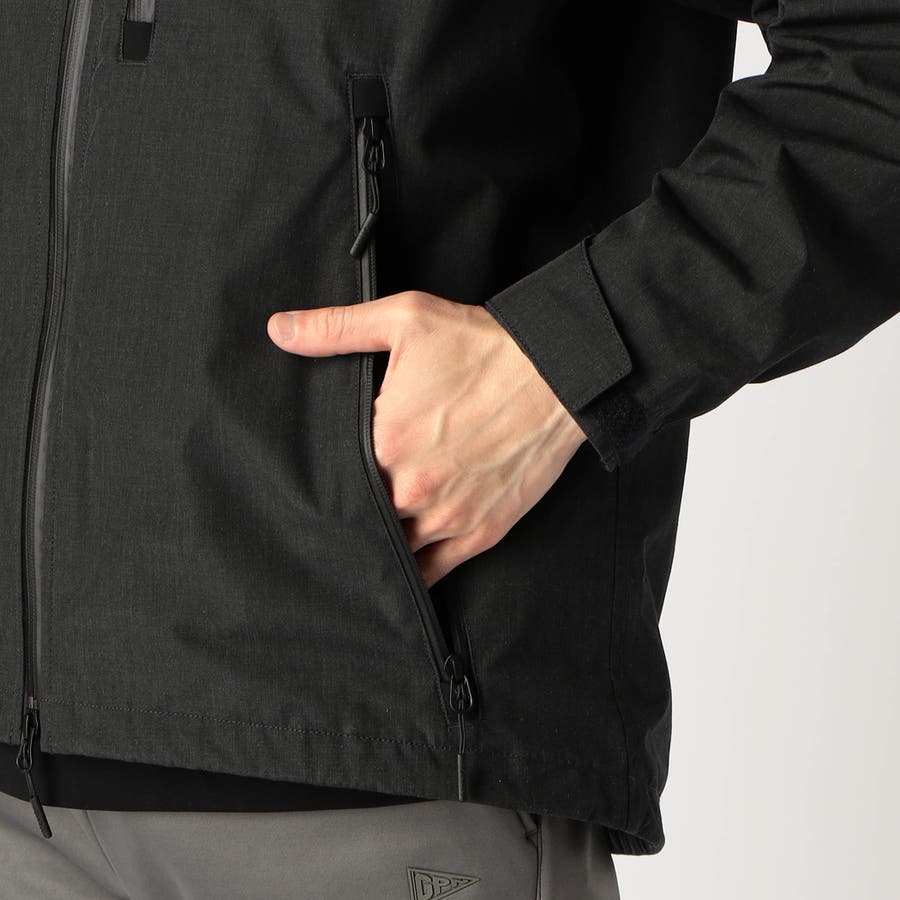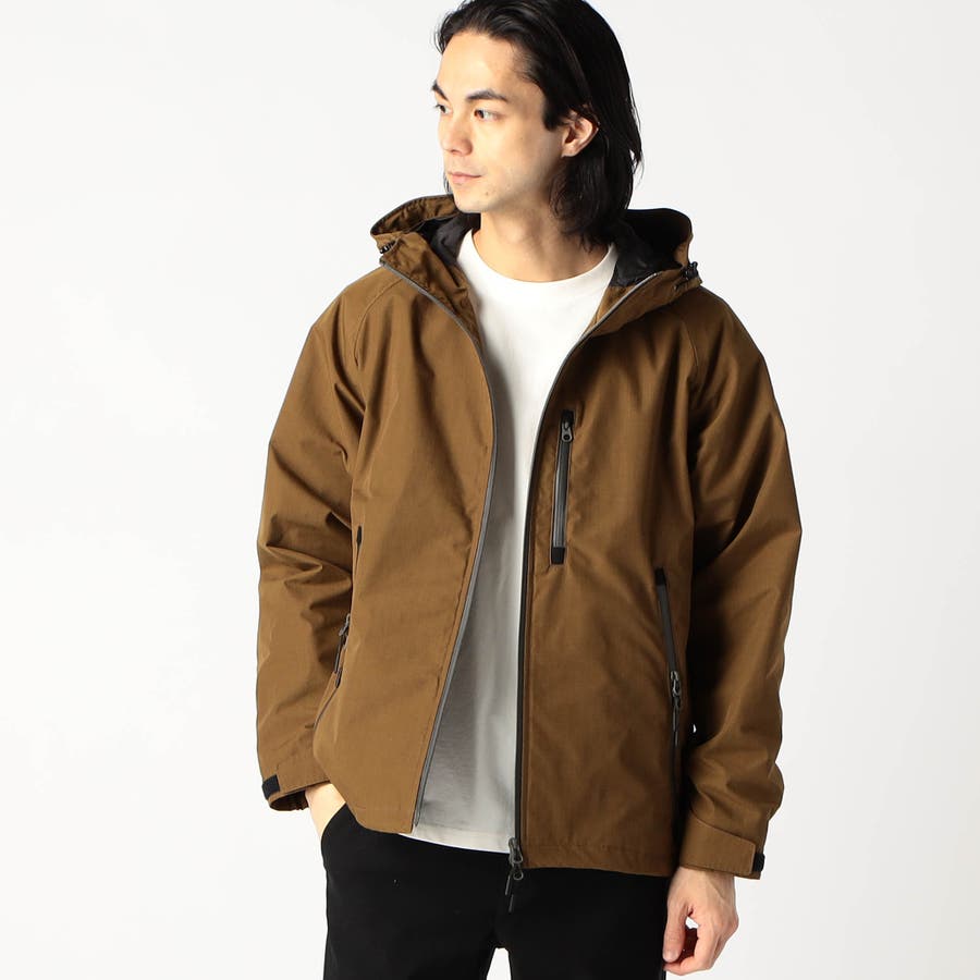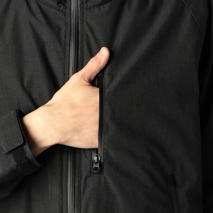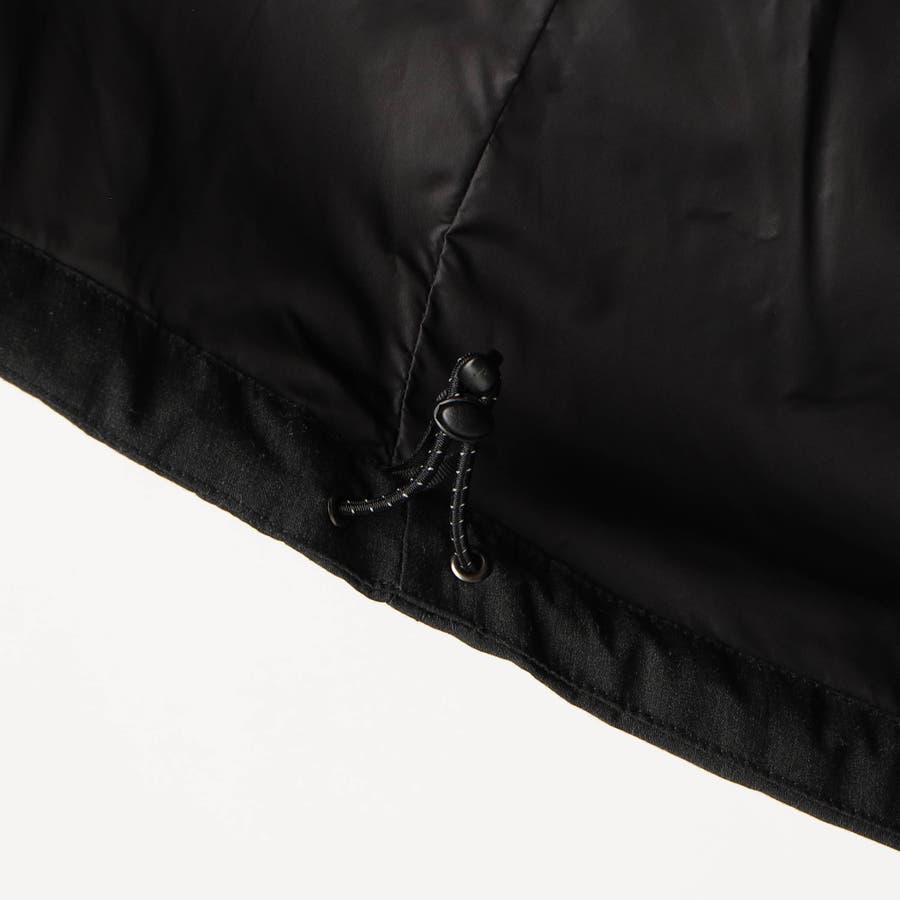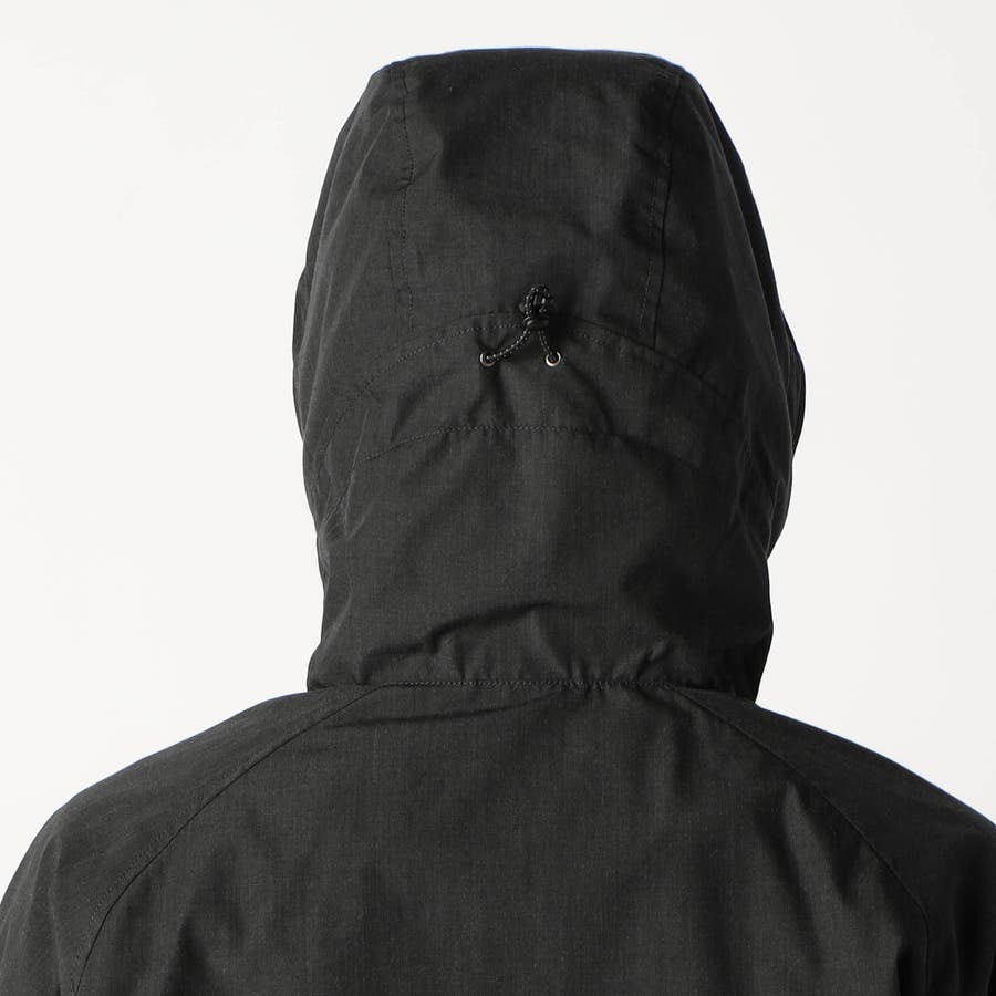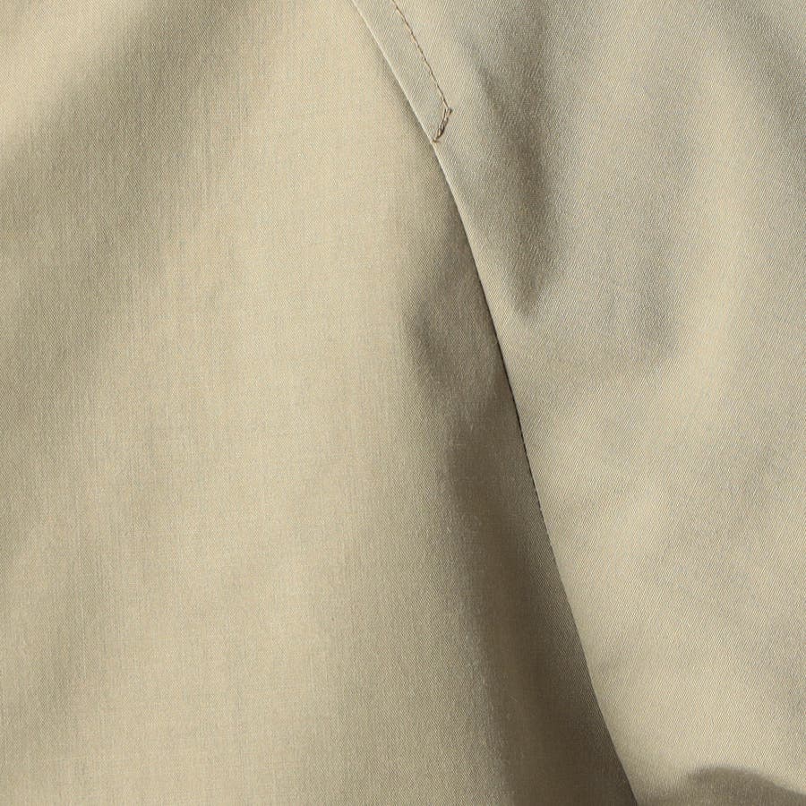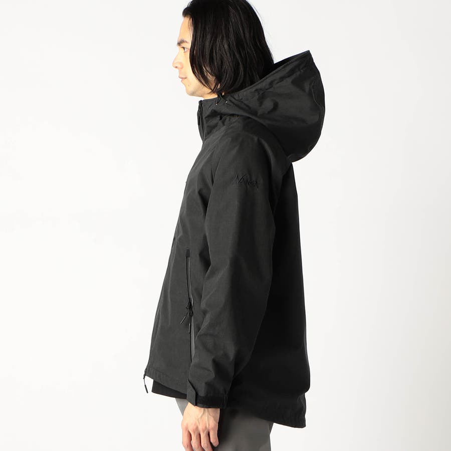 毎シーズン好調のNANGA別注オーロラダウンジャケットをベースに通年で着用出来るダウンが入っていないシェルブルゾンをNANGAの代名詞的な素材でもある難燃素材アラミド繊維を使用した”TAKIBI”素材を使って作成。フロント、ポケットのファスナーはYKK社製の止水ファスナーを使用、フードの廻りにはプラスチックワイヤーを入れる事でフードに立体感と安定感、防風性が出るようにしています。フードには3か所、裾には2か所コードストッパーでコードを絞って調整する事も出来るのでコーディネートに合わせてシルエットも調整する事も可能です。ブラックのネームがGrand PARKの別注だけの特別な配色になっています。裏地はNANGAの寝袋でも使用している40デニールのナイロンを使用。アラミド繊維が入っている事で他にはない独特の生地の色目でアウトドアだけではなく街着としてもコーディネートしやすくなっています。インナーダウンとのコーディネートで冬でも着用する事が出来ます。