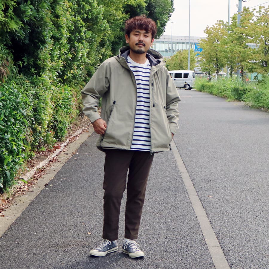 <スタッフ着用コメント>本社スタッフH 身長:178cm/体重:66kg/体型:普通/普段サイズ:48(L)/着用サイズ:48(L)