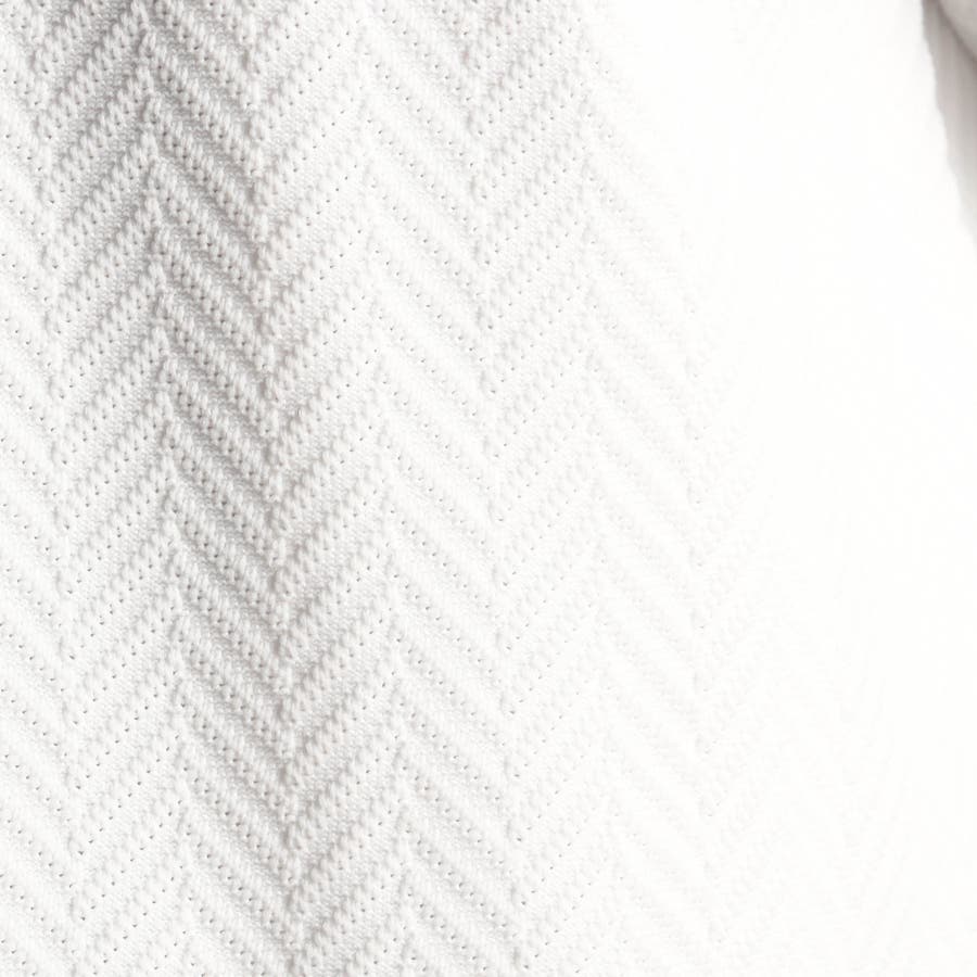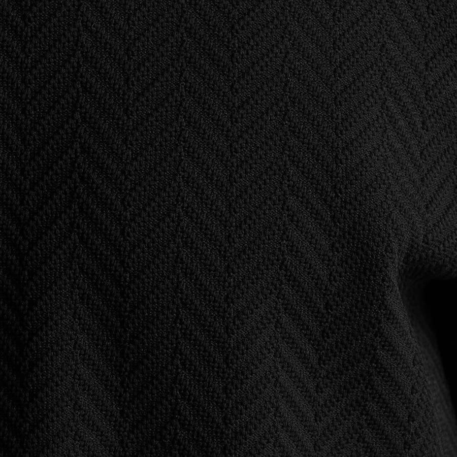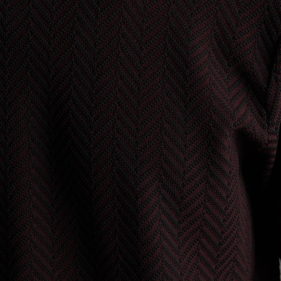 高収縮ポリエステル糸を使用し、14ゲージという細番手で高密度に編みたてたヘリンボン柄ニット。ポリエステル100%になりますので、軽量で家庭洗濯でき、速乾性に優れてシワにもなりづらいのが特長。