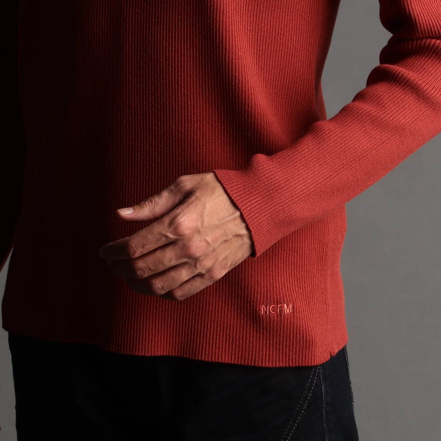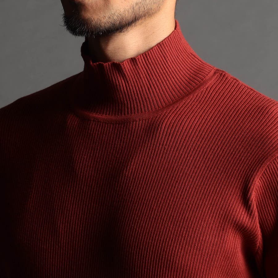 12ゲージで編み立てたハイゲージのリブ編みハイネックニットになります。極細のゴム糸交編の二重臼リブでしっかり感と高級感を加えました。シンプルで綺麗目のインナ-ニットは、様々な大人カジュアルスタイリングができるアイテムに仕上がっています。