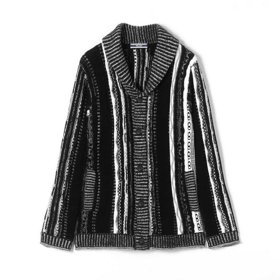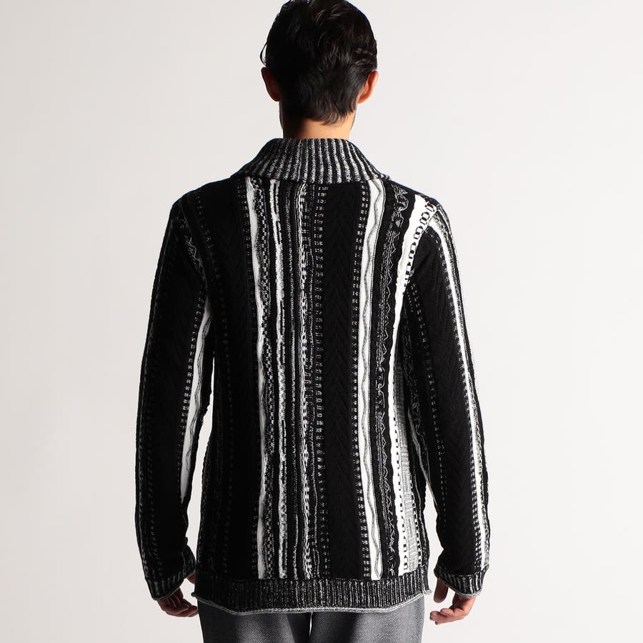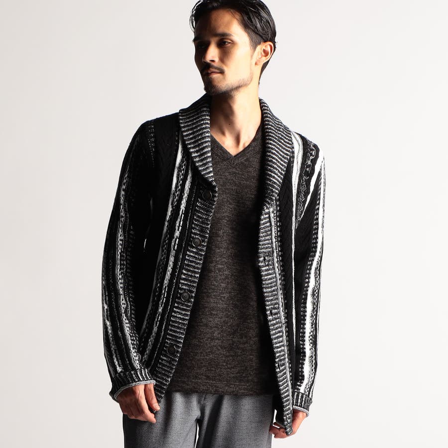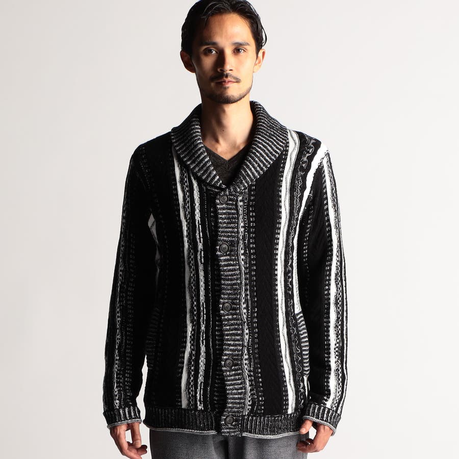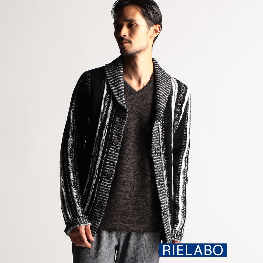 【RIELABO】3Dランダムストライプジャカード ショールカラーカーディガン