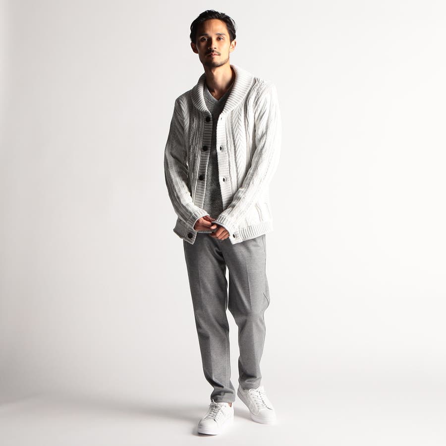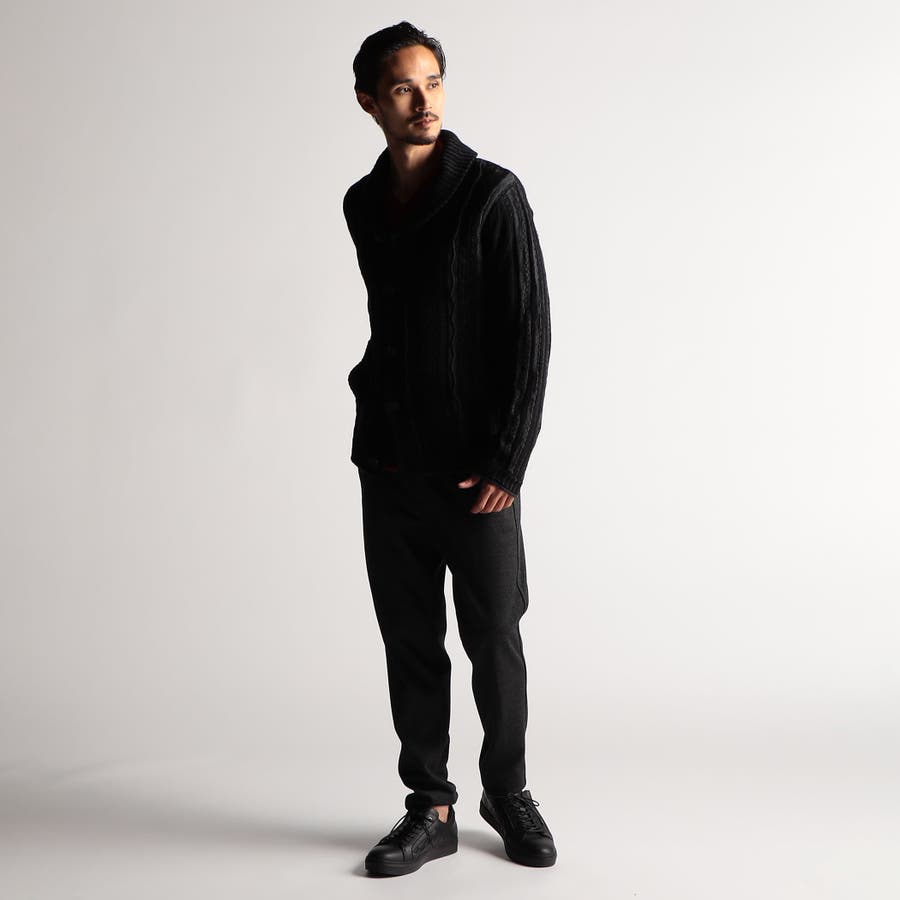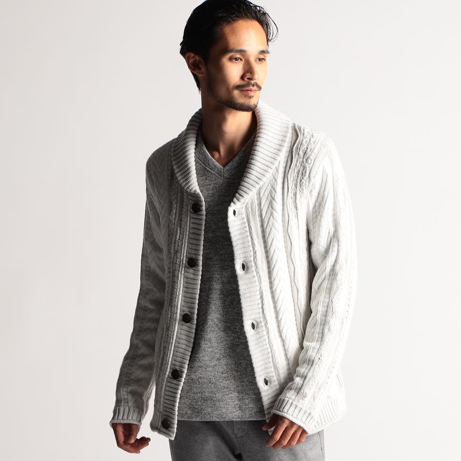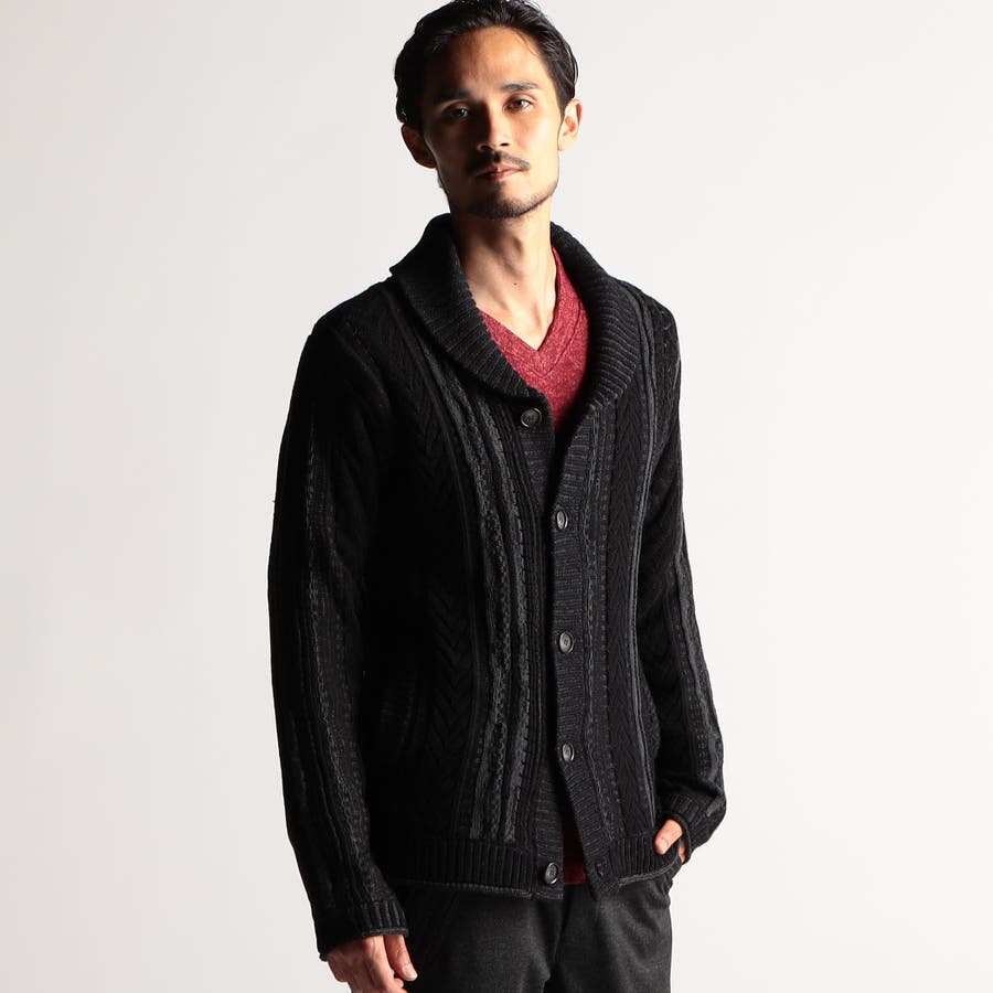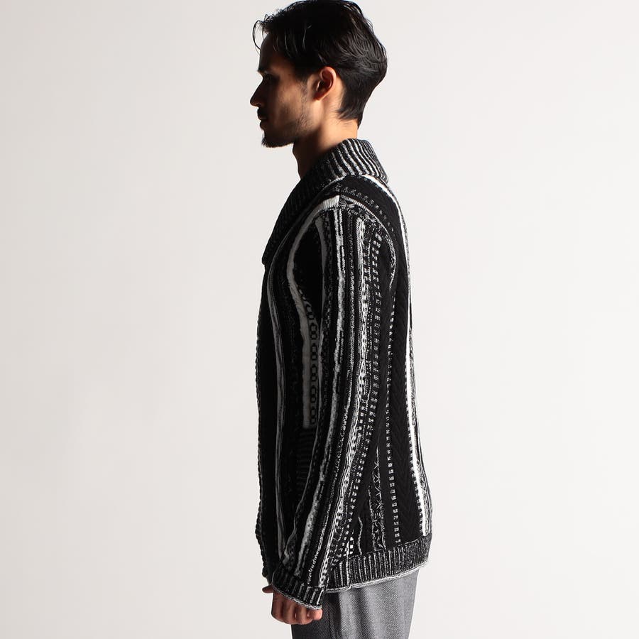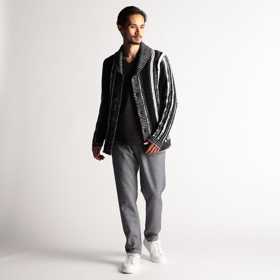 【RIELABO】3Dランダムストライプジャカード ショールカラーカーディガン