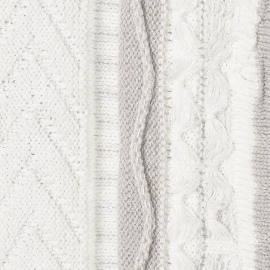 綿のナチュラルな風合いに、アクリル混で軽さを出し、編地の凹凸感を強調する為にポリエステルを混紡しています。