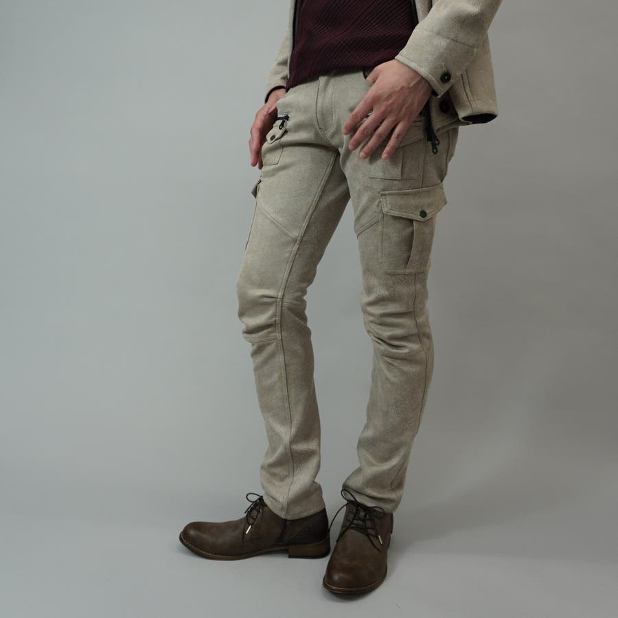 ムラプリントスウェードポンチ多ポケットカーゴ