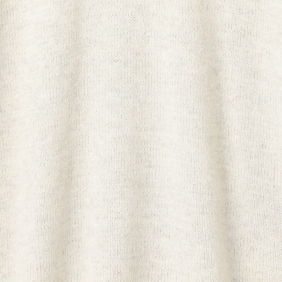 モ-ル糸、ストレッチポリエステル糸、6%ウ-ル4者混糸を3本引き揃えて編んでいます。レ-ヨン/ナイロンのモ-ルヤ-ンは素肌に触れてもチクチクせず微光沢とウエットなタッチが特徴です。
