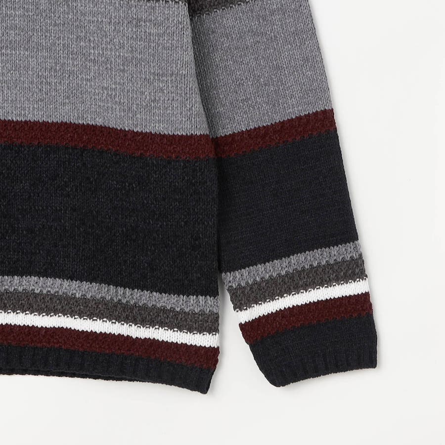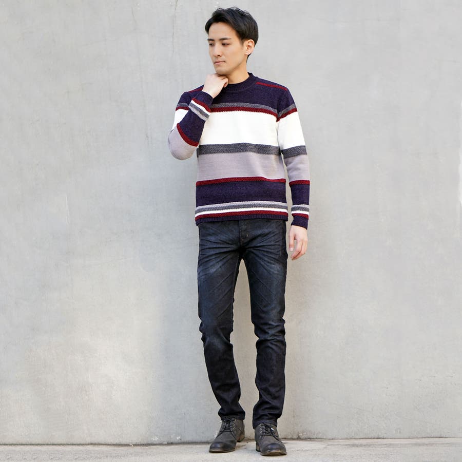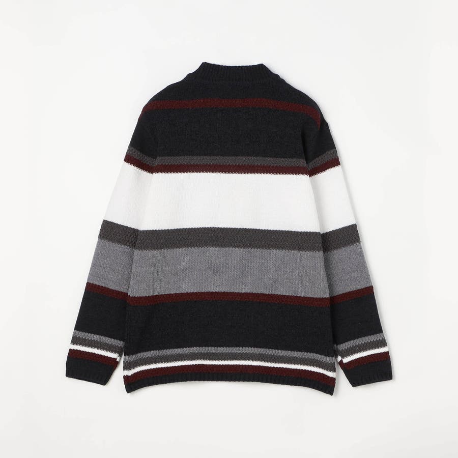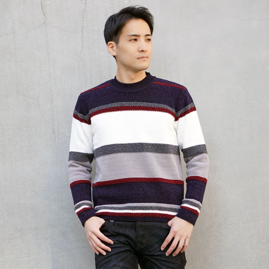 特徴的なパネルボ-ダ-柄が目を引くデザイン。洗練された編地配色切替で程良いカラ-アクセントがポイントになっています。モックネックなので使いやすく、暖かい雰囲気と柔らかな素材感のニットです。インナ-にも使いやすいのでダウンなどと合せてのカジュアルスタイルにも、ロングコ-トなどと合せたキレイ目スタイルにも相性が良い万能ニットです。