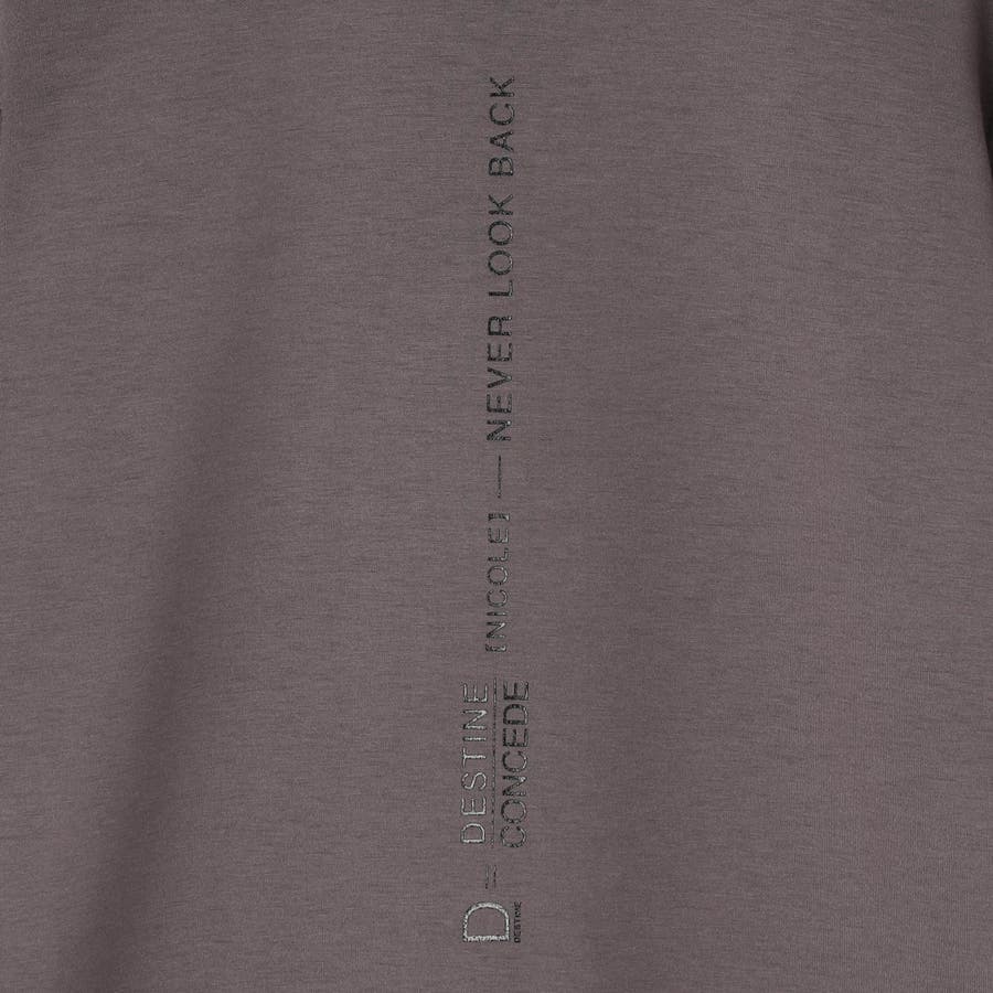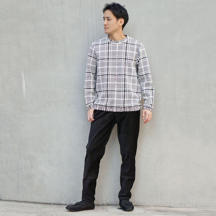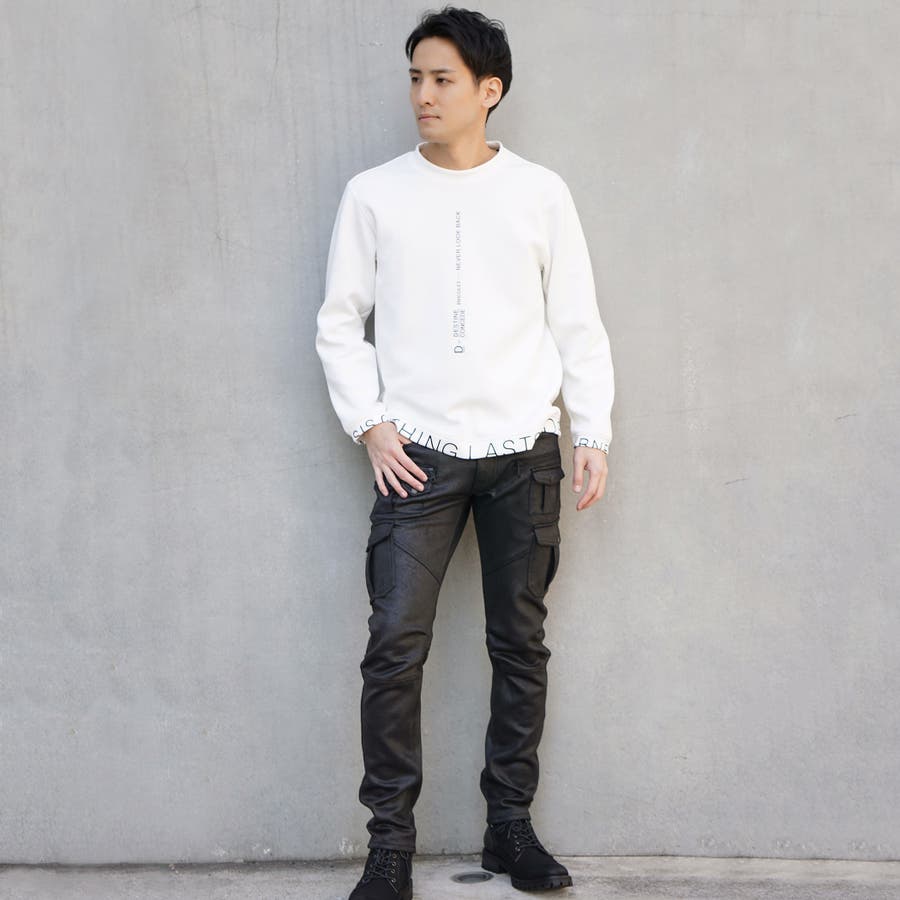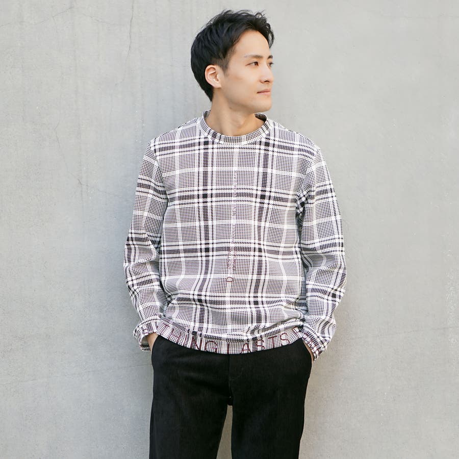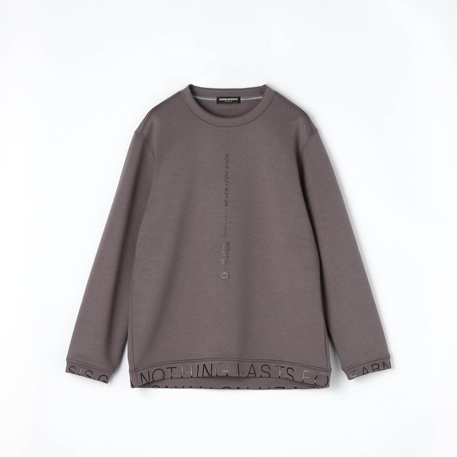 裾、袖口切り替えのプリントデザインで少しゆとり感を出した大人な雰囲気のスウェットになります。モックネック気味に少し首に沿わせた衿、ゆるめのシルエット、ロゴプリントがトレンド感溢れる一枚です。