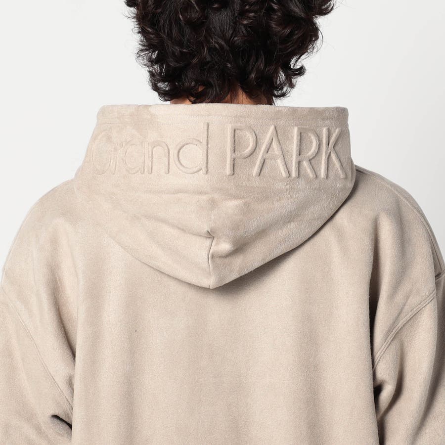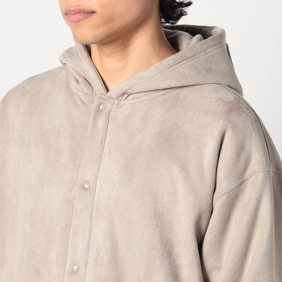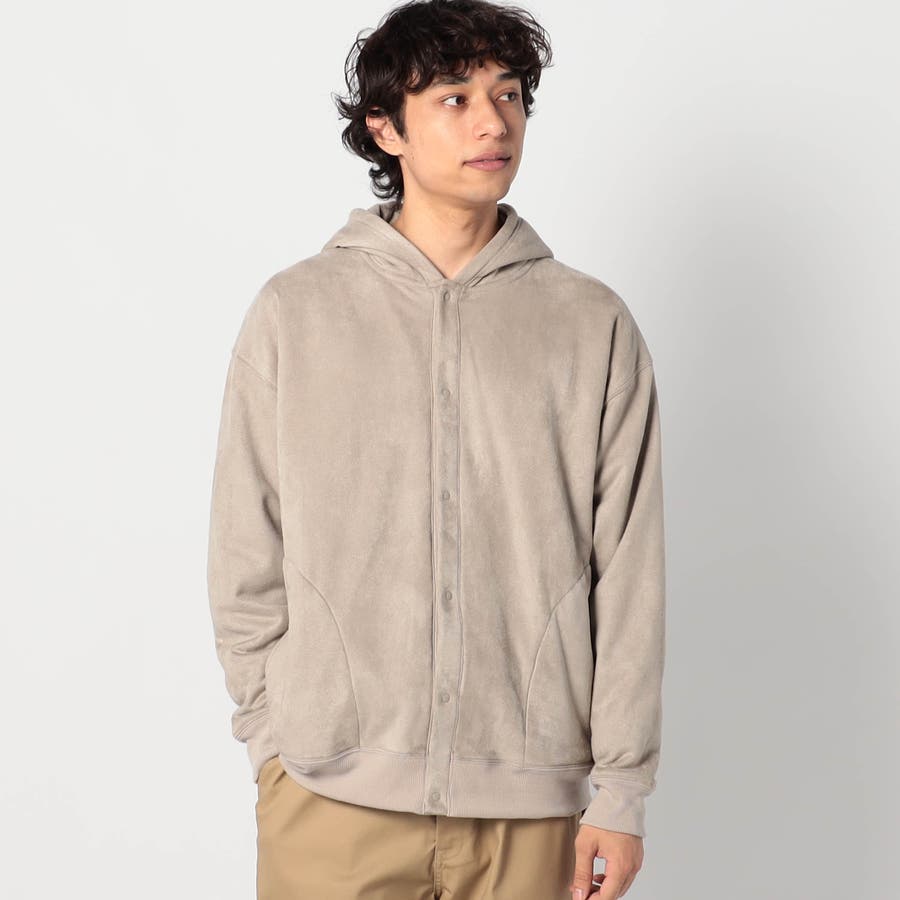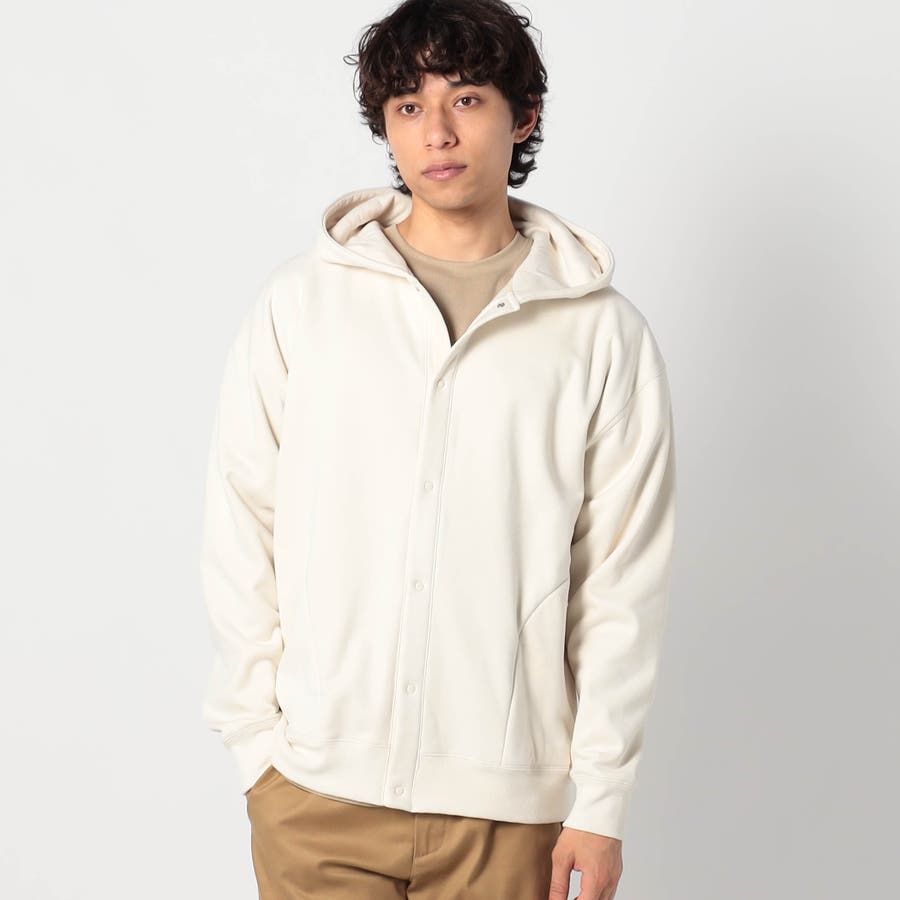 パーカー特有の仕様でもある裾のリブを無くして、フロントを釦開きにする事でブルゾンのようなに羽織リでも着用してもインナーで着てもどちらも使える仕様になっています。