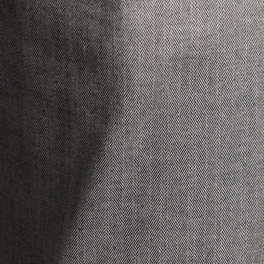 先染めコットンをランダム(昼夜)に織り上げたストレッチヘリンボン素材。