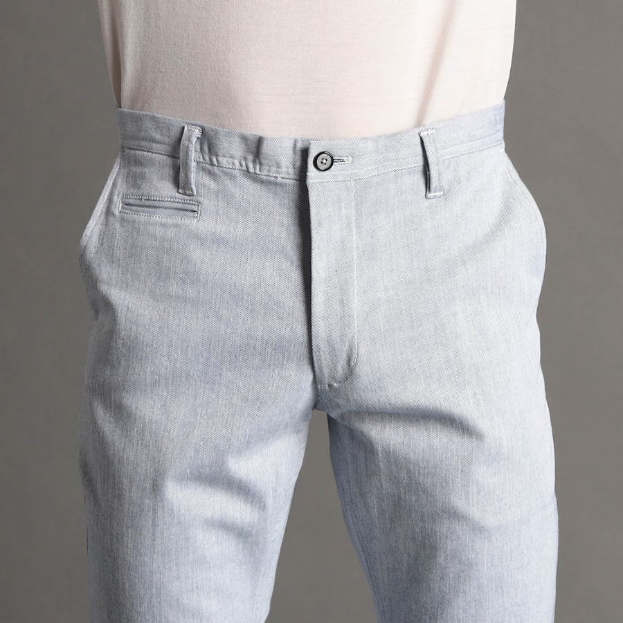 先染めコットンを、シャンブレー見えするツイル組織に織り上げたスノーデニム。
