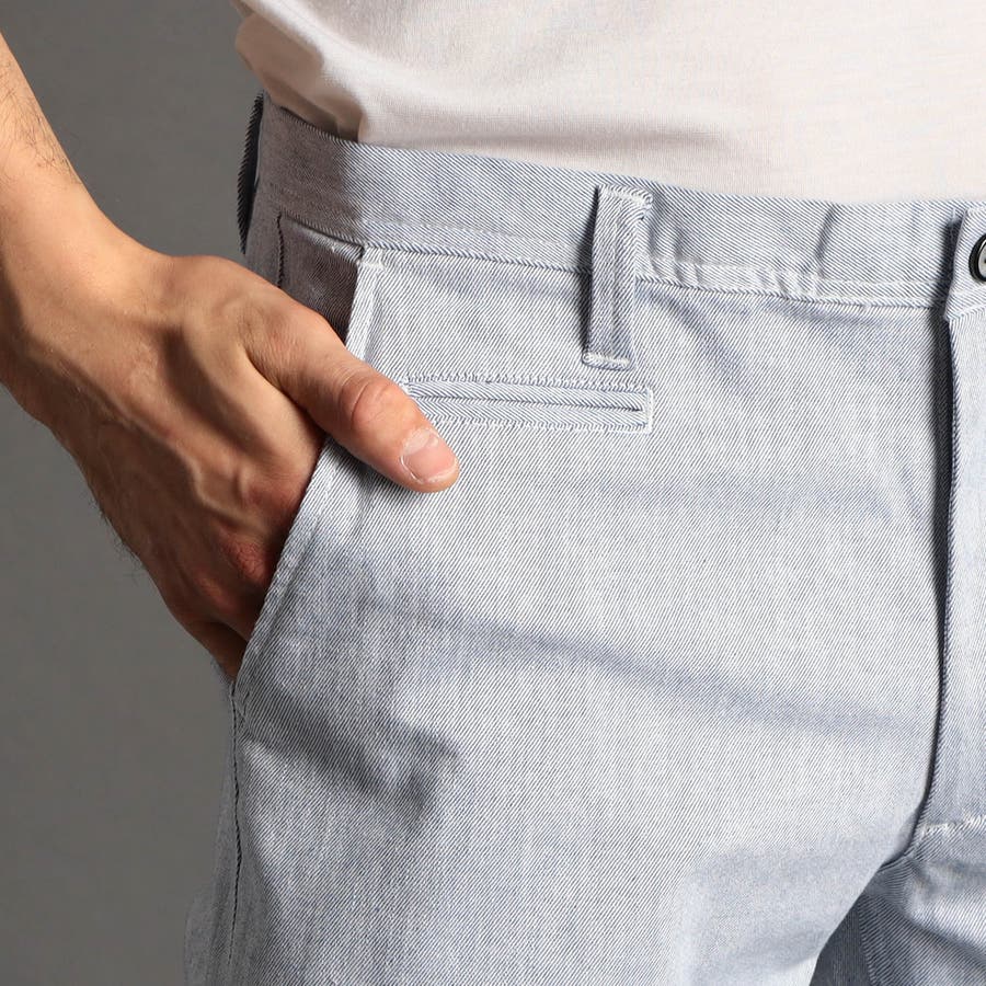 股上は浅めで少しゆとりあるウエスト回りから程良くテーパードしたシルエットは、履き心地抜群です。