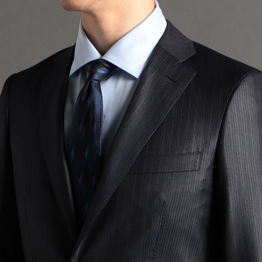 同柄チーフと合わせることでコーディネートが統一され、よりドレッシーなスタイリングを演出します。