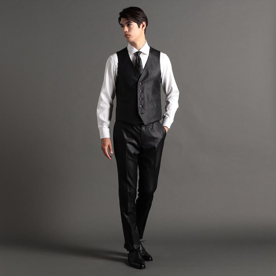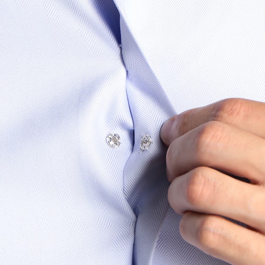 第1釦と第2釦の間にスナップ釦を付けているので、ノータイド時の胸元の開きをバランス良く演出します。