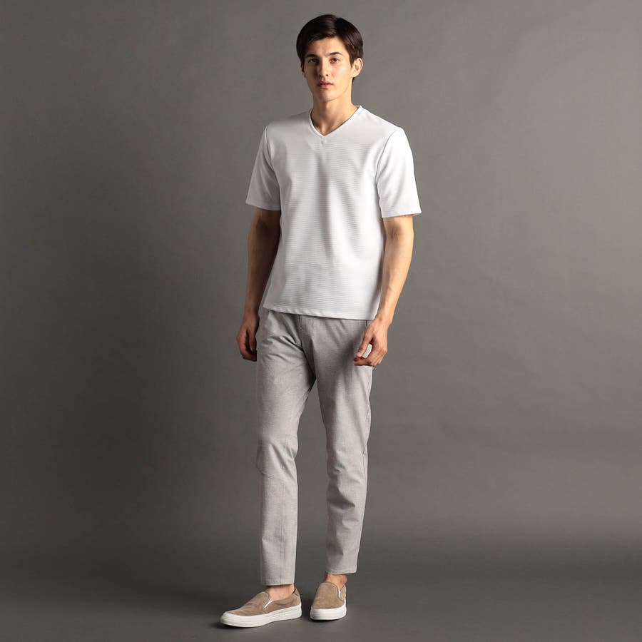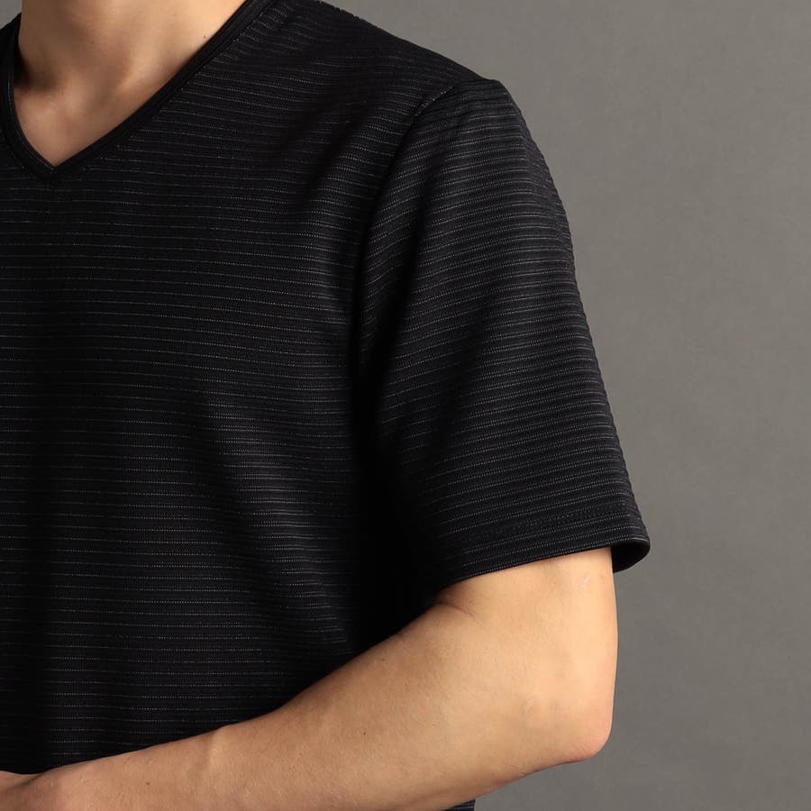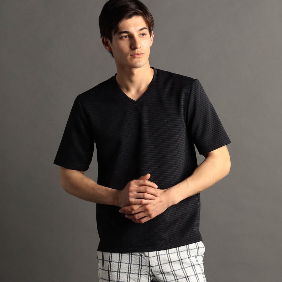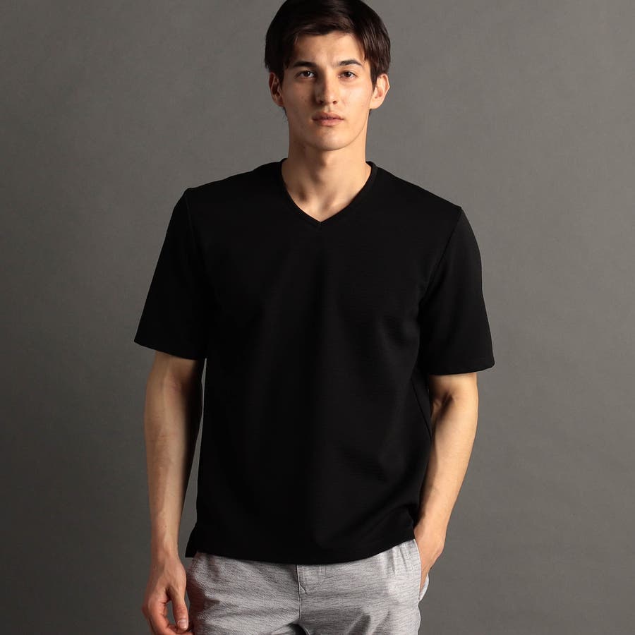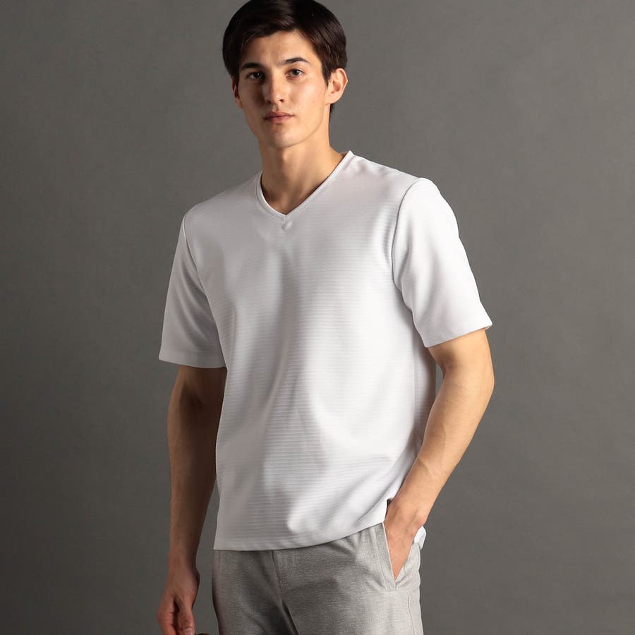 スポーティでクリーンな印象のVネックTシャツ。
